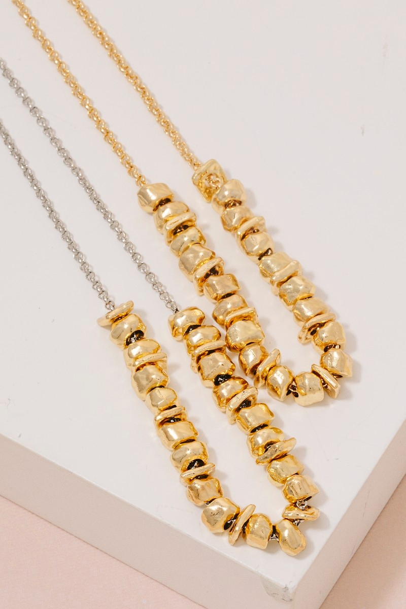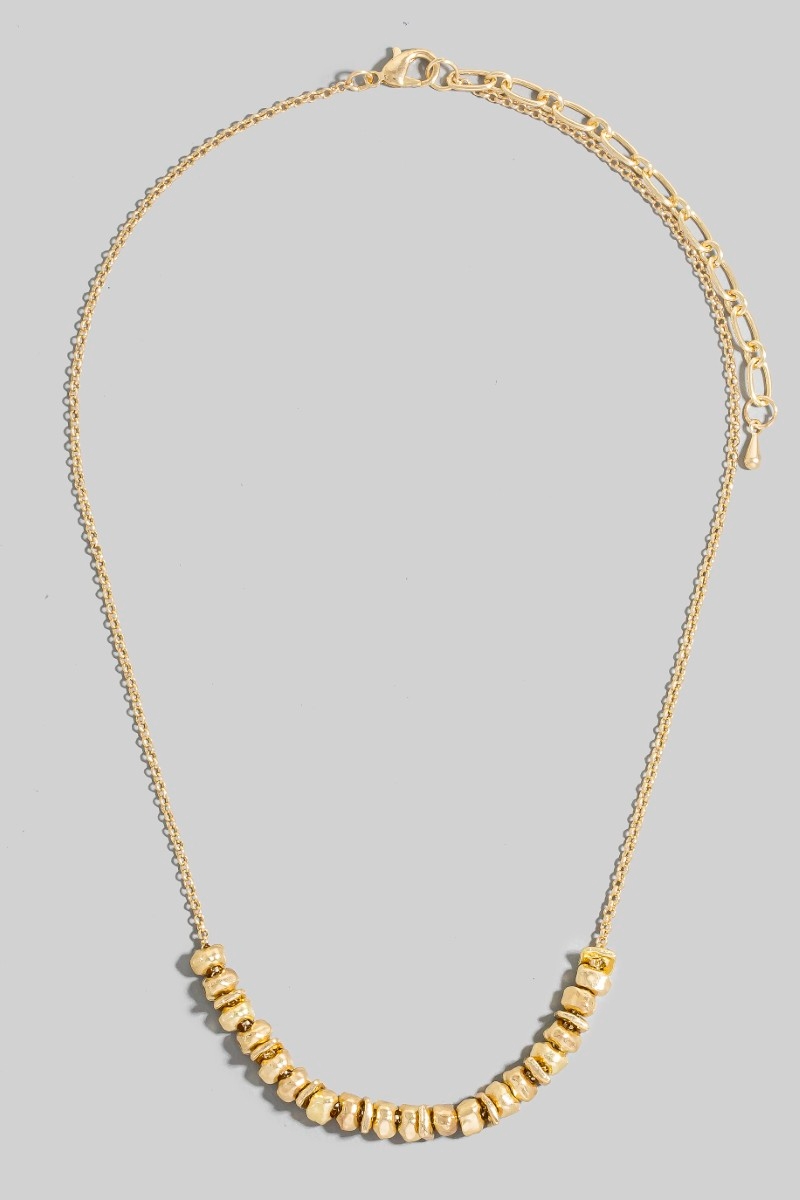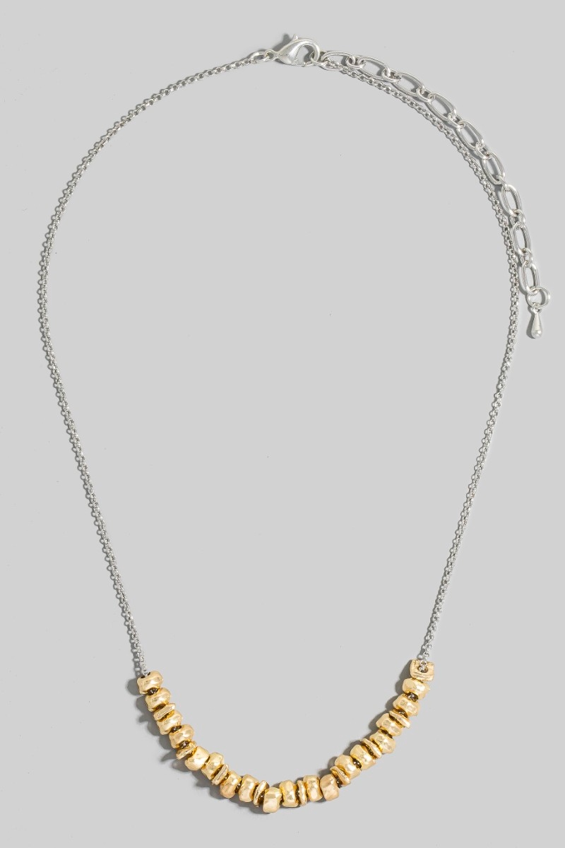 • This chain necklace brings a stunning mixed metallic beads dainty style. Celebrate the art of accessorizing with this piece that effortlessly encapsulates modern trends.