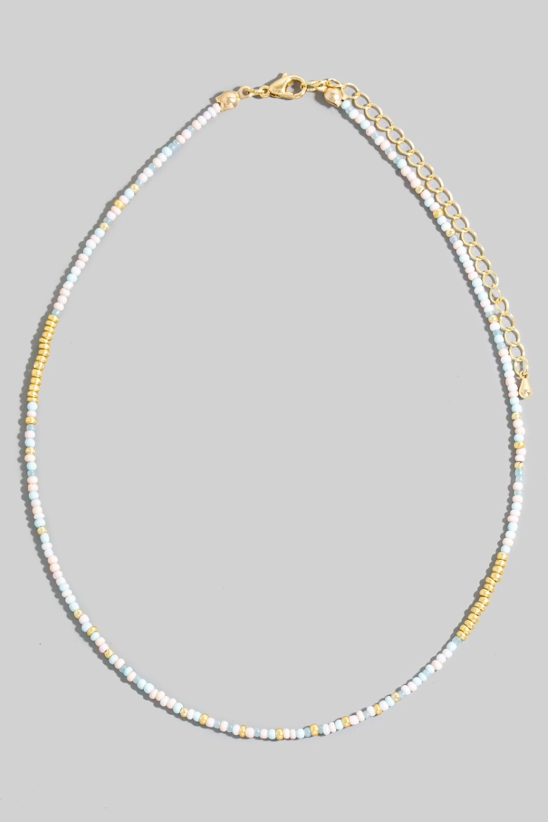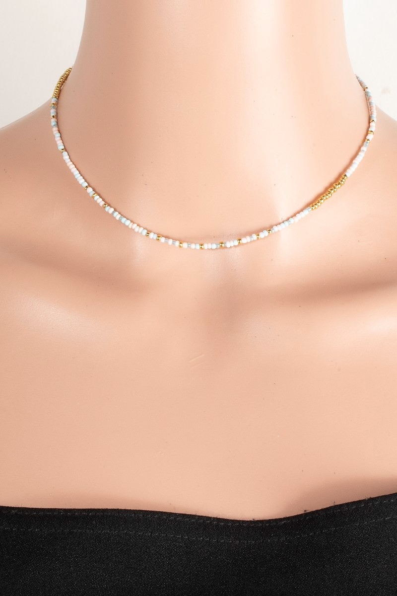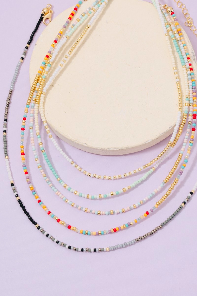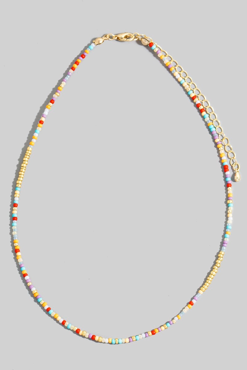 • This necklace displays a vibrant mixed seed beaded style. Immerse yourself in the details of design, as this necklace effortlessly becomes a conversation starter.