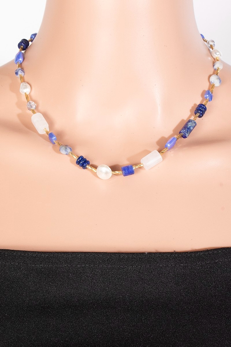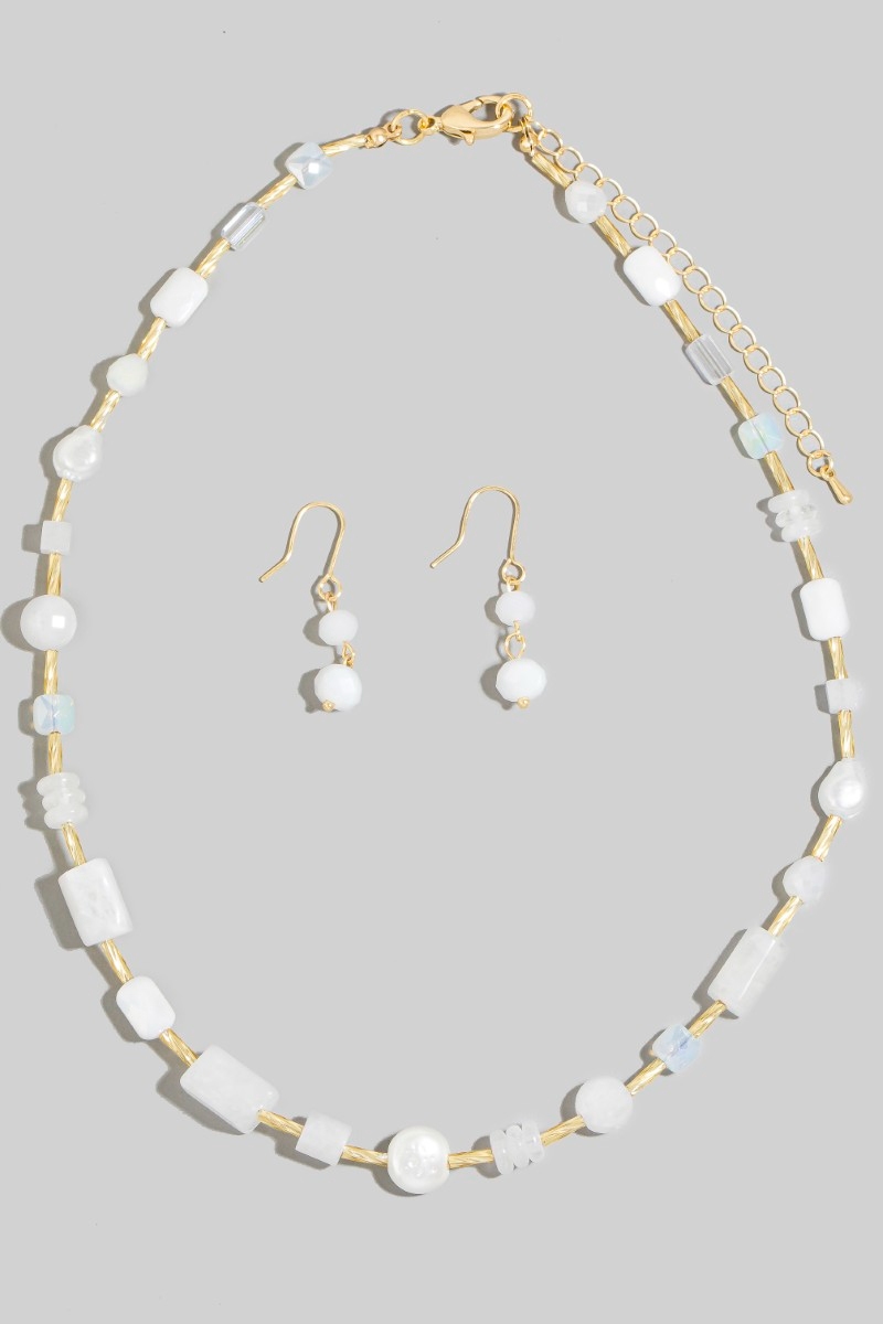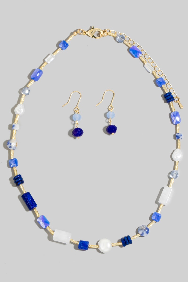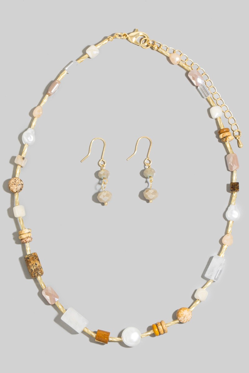 - This necklace set features a fashionable mixed tube stone and faceted beads style. Elevate your ensemble with this chic, timeless necklace set.
