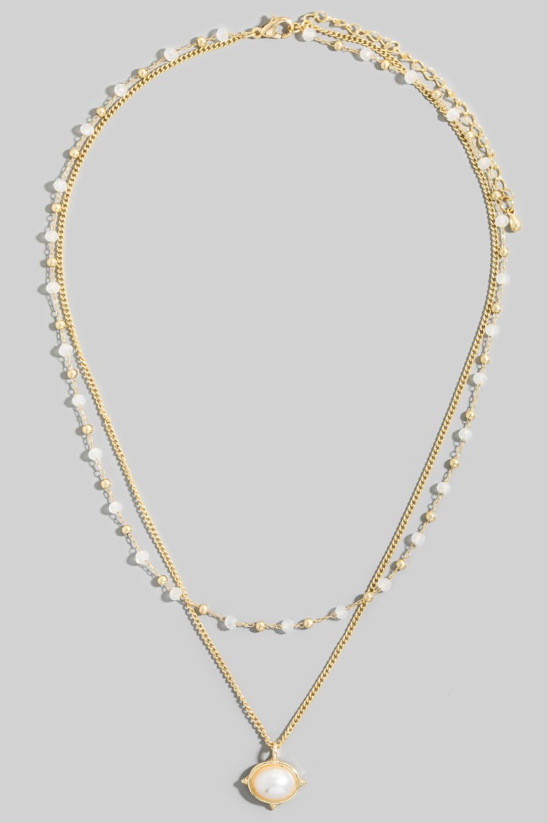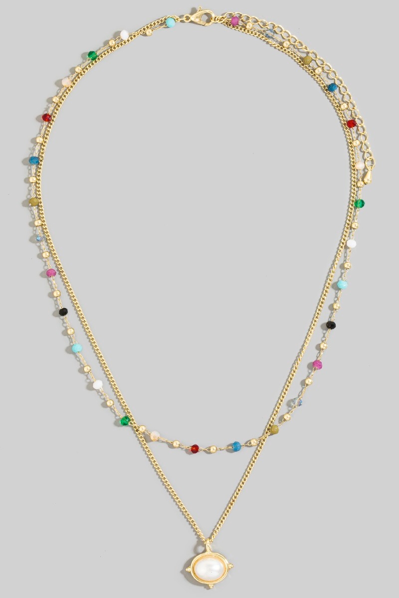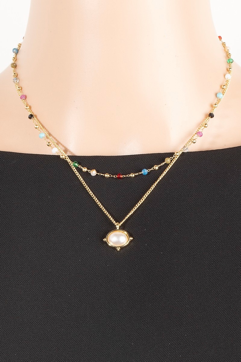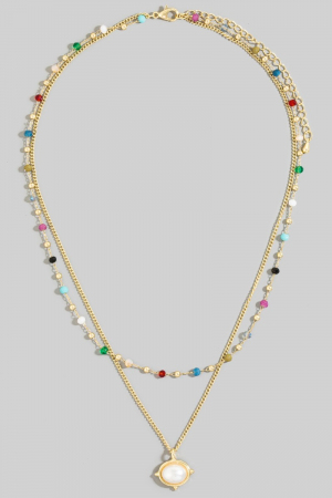 • This layered necklace brings a unique pearl pendant and mini beads style. Celebrate individual style with this versatile, eye-catching addition.