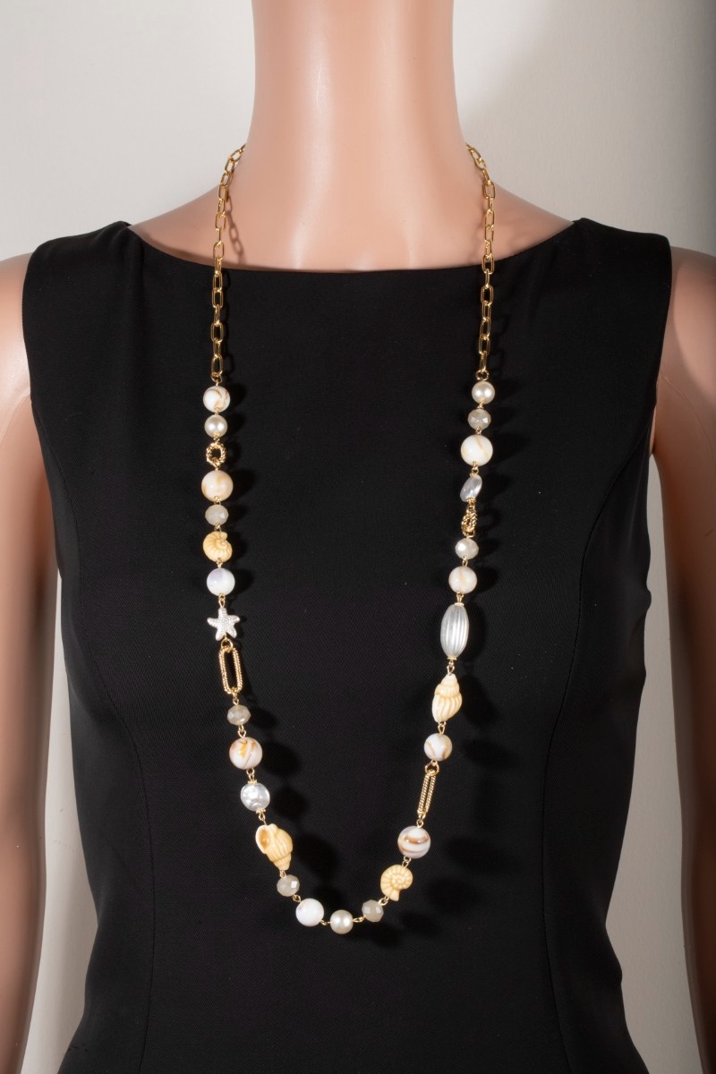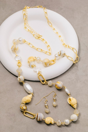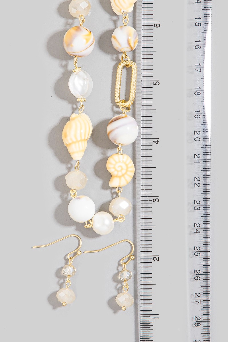 - This necklace set brings a luxurious seashell beaded charm style. Celebrate the art of accessorizing with this piece that effortlessly encapsulates modern trends.