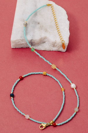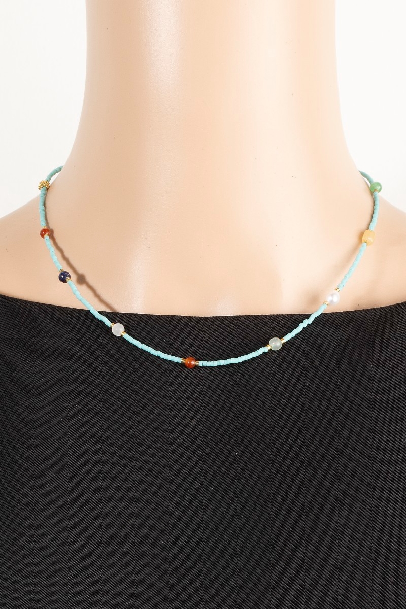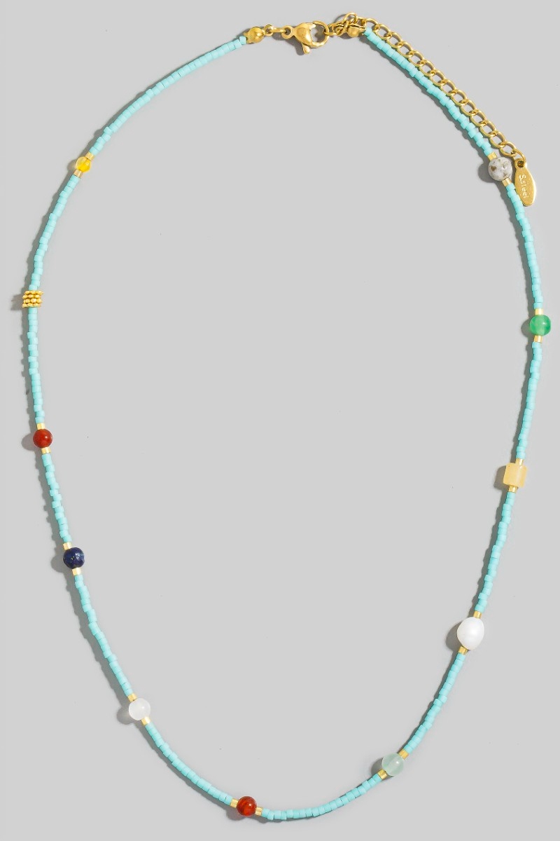 • This necklace introduces a stunning seed beaded bead station style. Elevate your ensemble with this chic, timeless necklace.