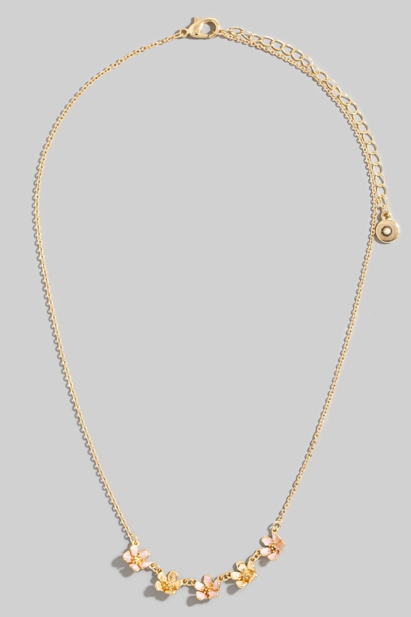 - This necklace showcases a timeless small enamel flower charms style. Indulge in the artistry of accessorizing with this unique piece.