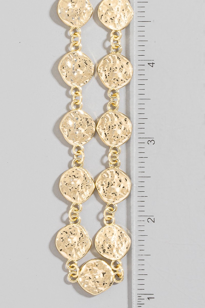 Matte Hammered Gold Oval Pendant Layered Chains Necklace