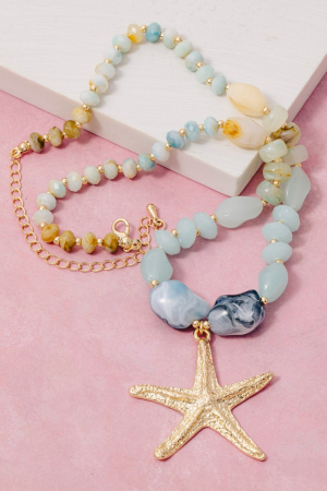 • This necklace introduces a stunning starfish pendant mixed beaded style. Embark on a journey of sartorial refinement as this necklace effortlessly complements your fashion sense.