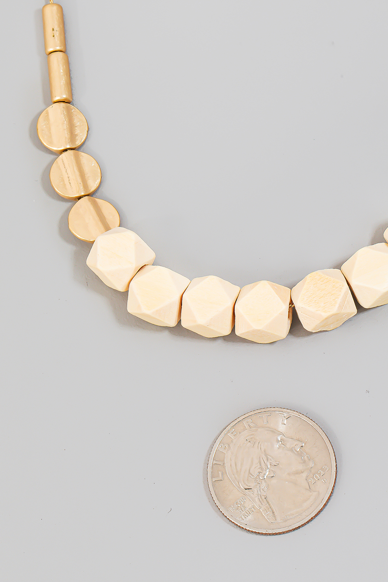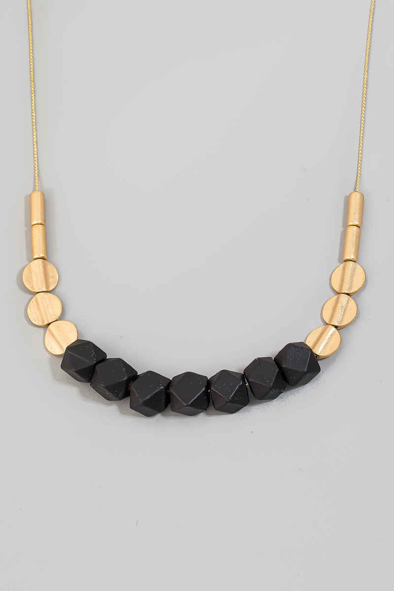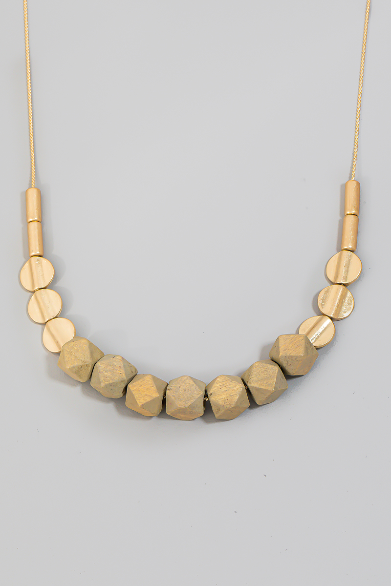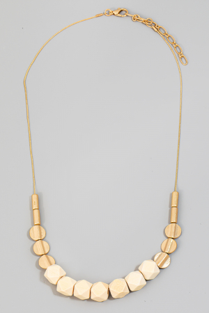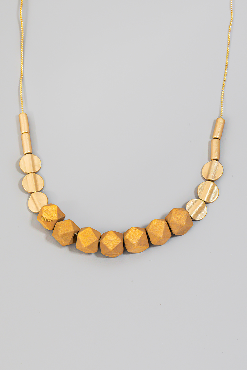 - This necklace showcases a timeless wood and metallic beaded style. Experience refined sophistication with this understated yet stylish piece.