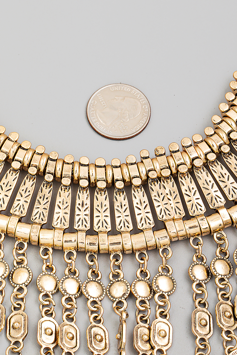 Gold Dipped Double Irregular Bar Y Chain Necklace