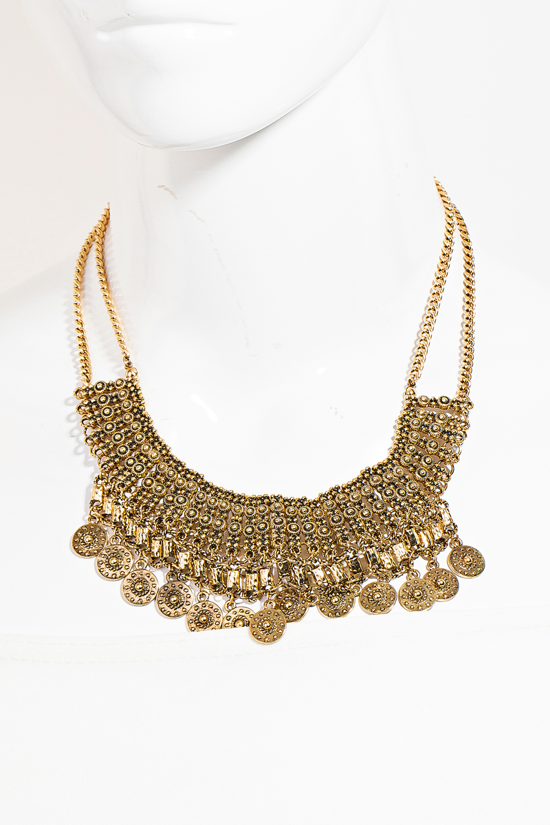 Gold Dipped Mini Heart Station Charms Chain Necklace