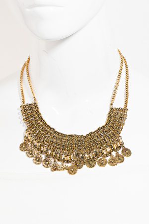 Gold Dipped Pearl Stud Ripple Coin Pendant Necklace