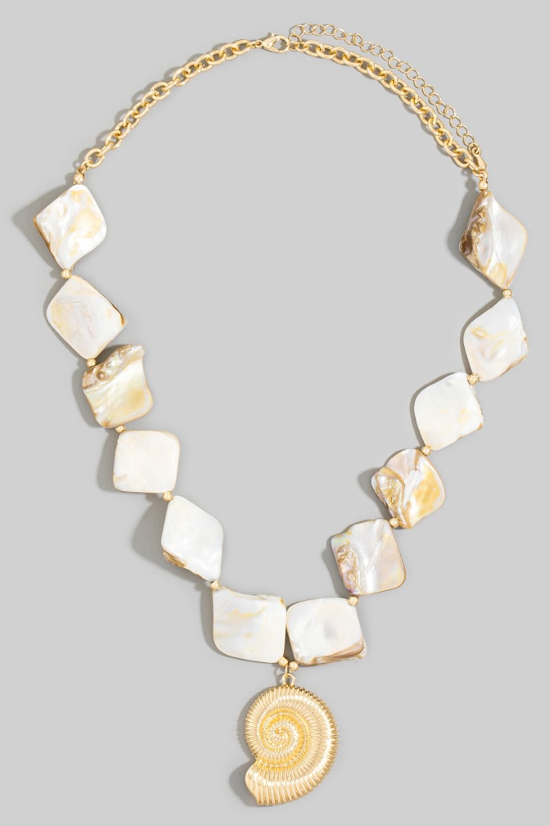 • This pendant necklace adds a modern assorted seashell link sealife style. Delight in the nuanced details that make this pendant necklace a testament to fine design and impeccable taste.