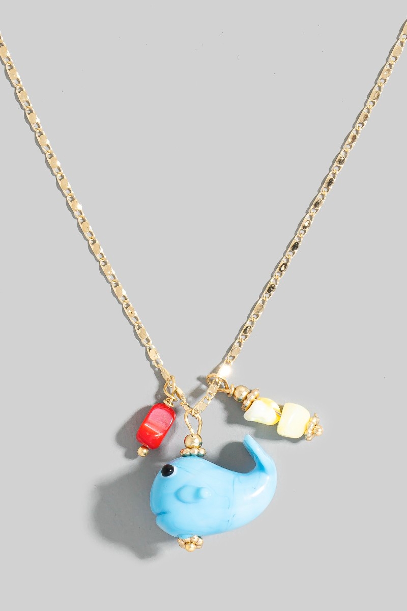 - This chain necklace showcases a timeless blue whale and beads multi pendant style. Redefine your look effortlessly with this standout, on-trend piece.