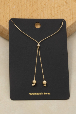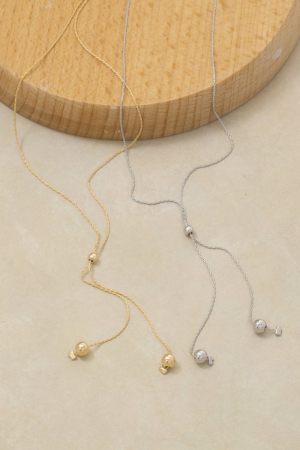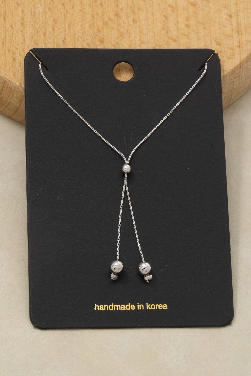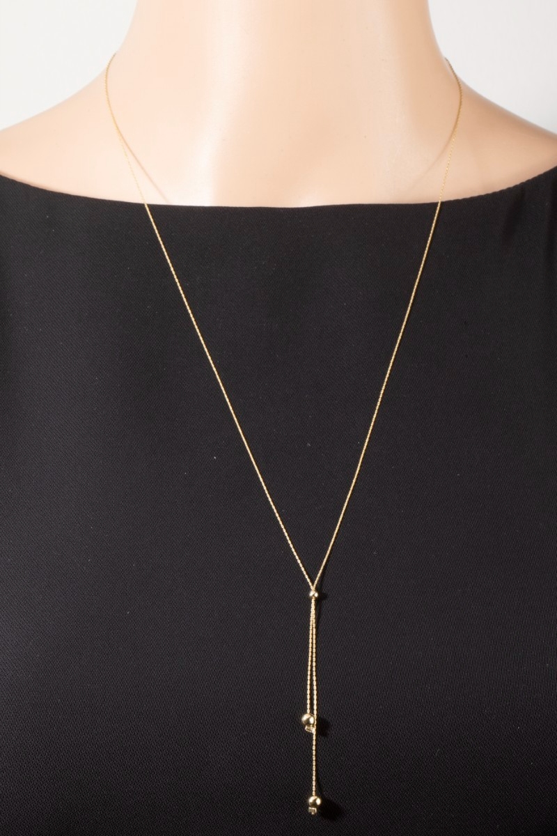 - This chain necklace features a fashionable chain link ball bead lariat necklace style. Experience a subtle blend of modernity and classic charm as this chain necklace effortlessly adorns your ensemble.