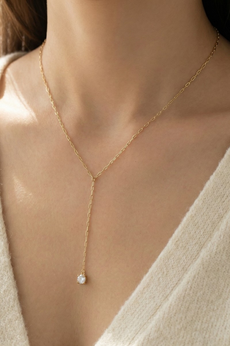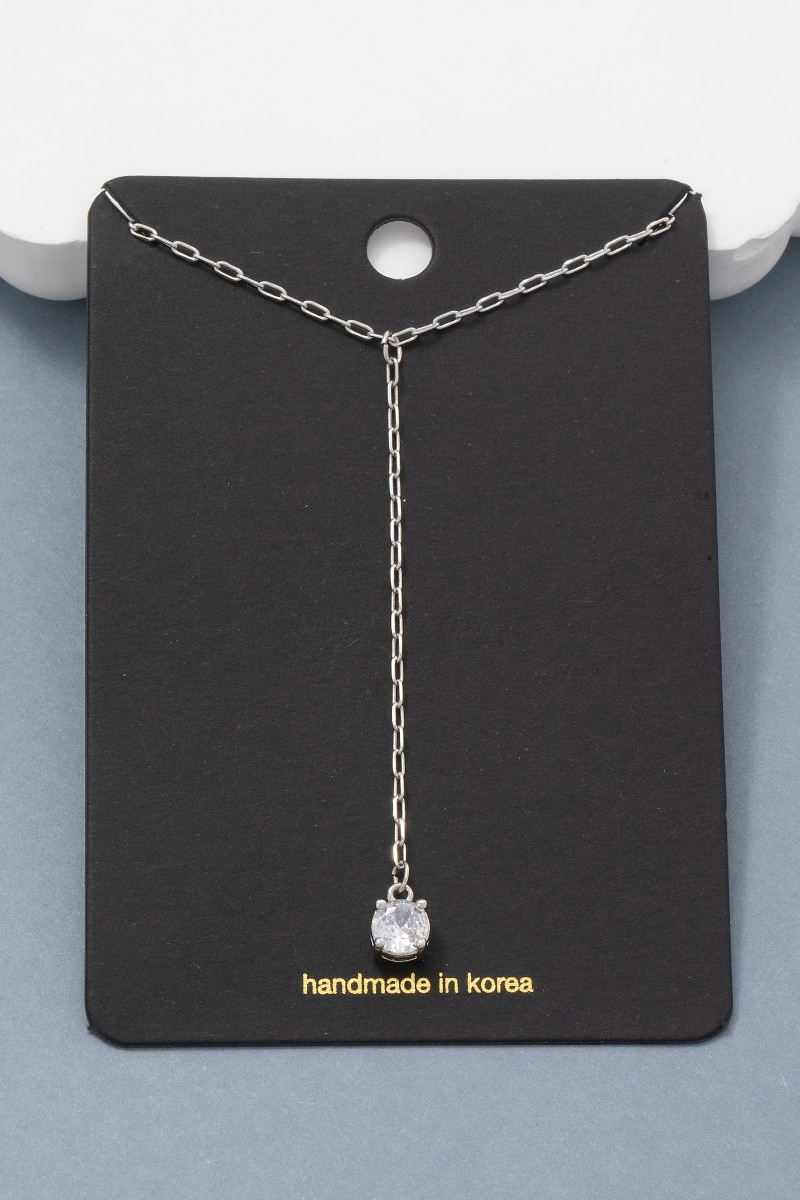 • This chain necklace introduces a stunning cz pendant y style. Step into a world of refined taste as this chain necklace effortlessly refines the details of your outfit.