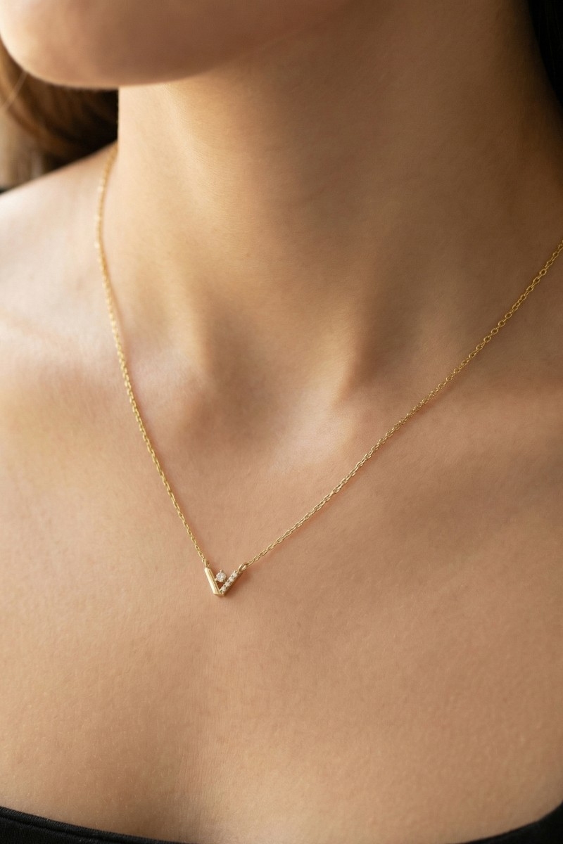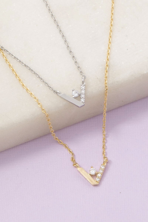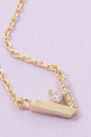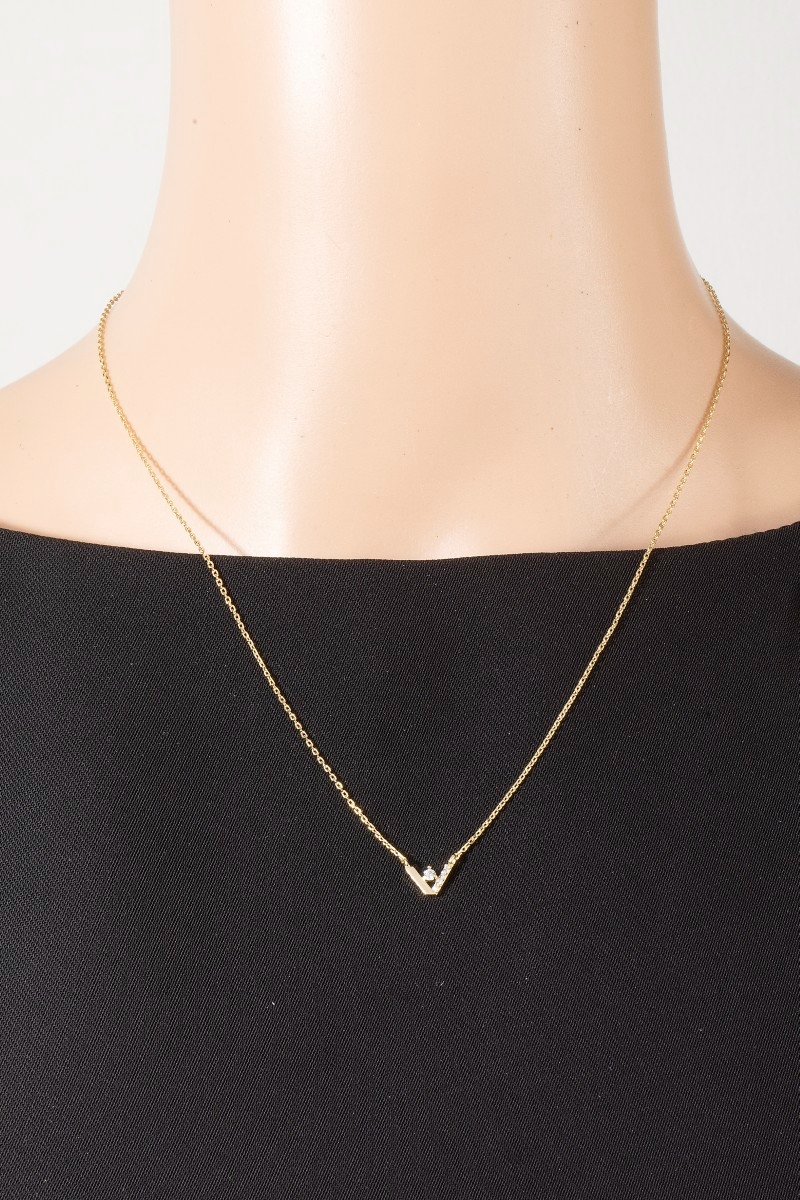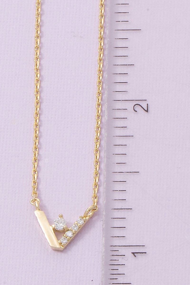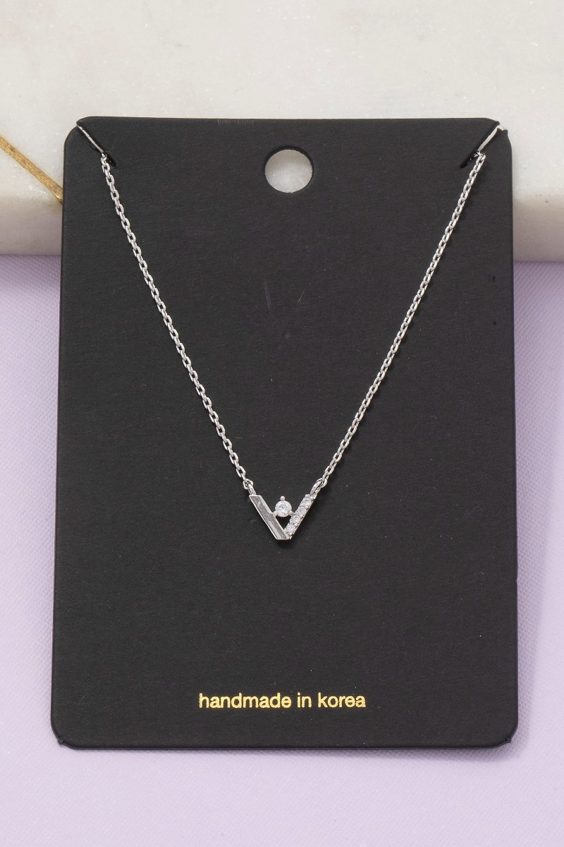 • This chain necklace brings a stunning cz v shape style. Elevate your ensemble with this chain necklace that effortlessly captures the essence of refined fashion.