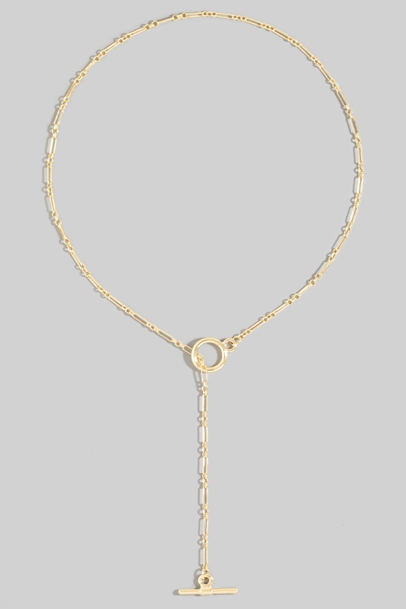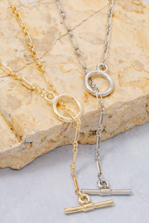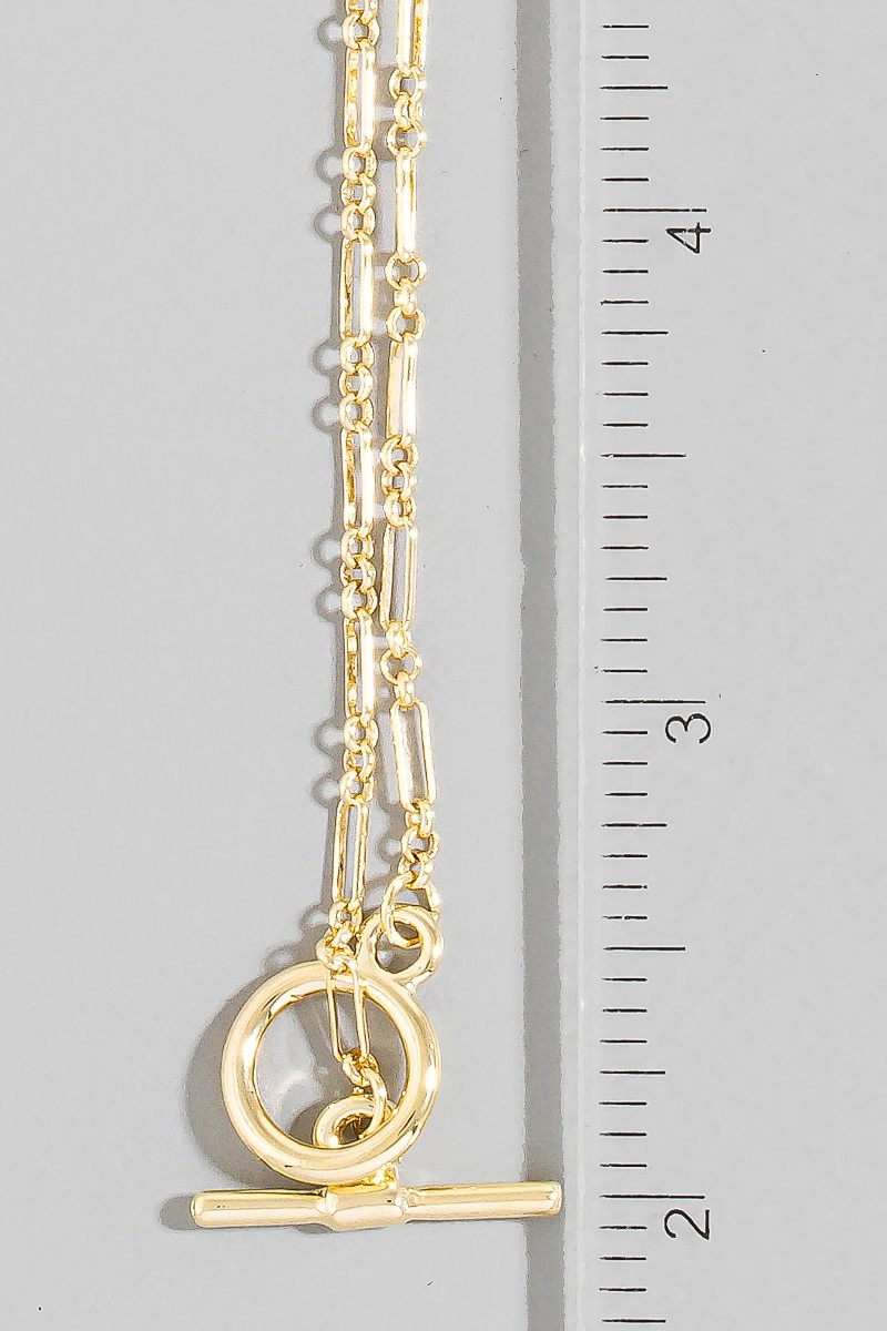 - This chain necklace brings a stunning dainty toggle style. Experience the joy of accessorizing with this piece that effortlessly combines versatility and charm.