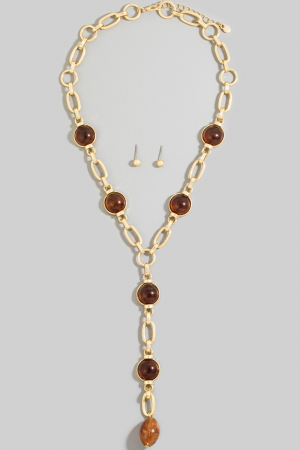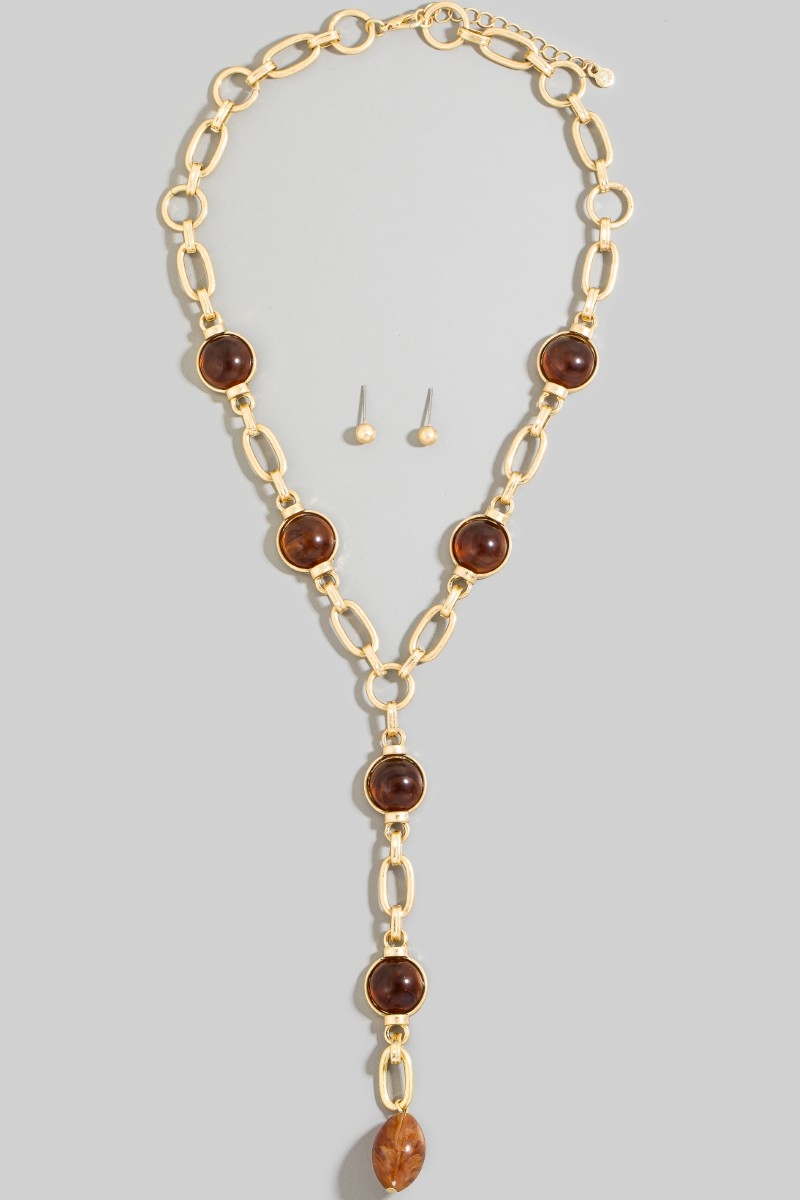 Gold Dipped Double Irregular Bar Y Chain Necklace