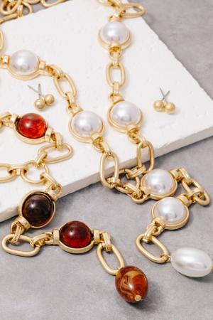 Mixed Sea Life And Pearl Charms Chain Necklace