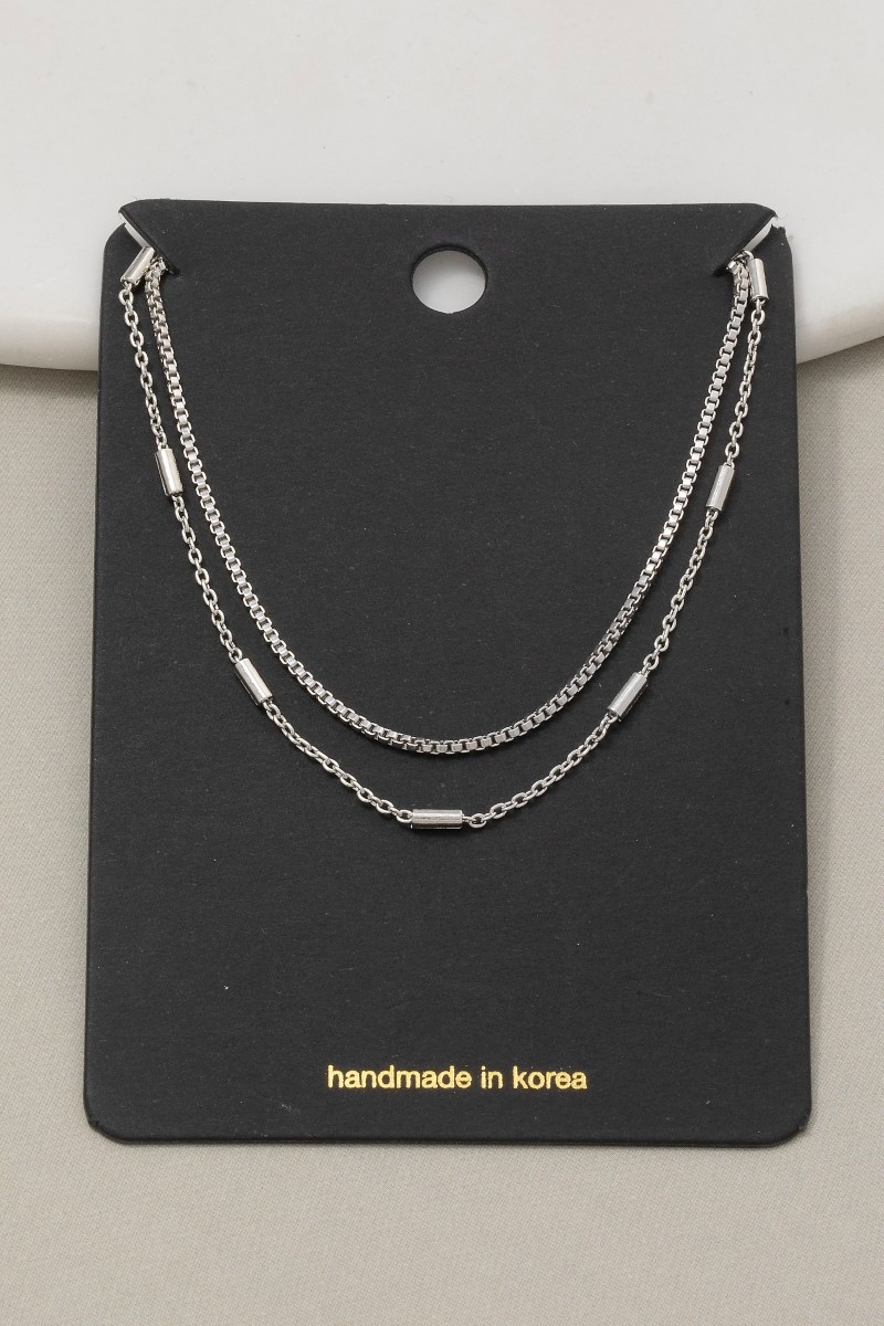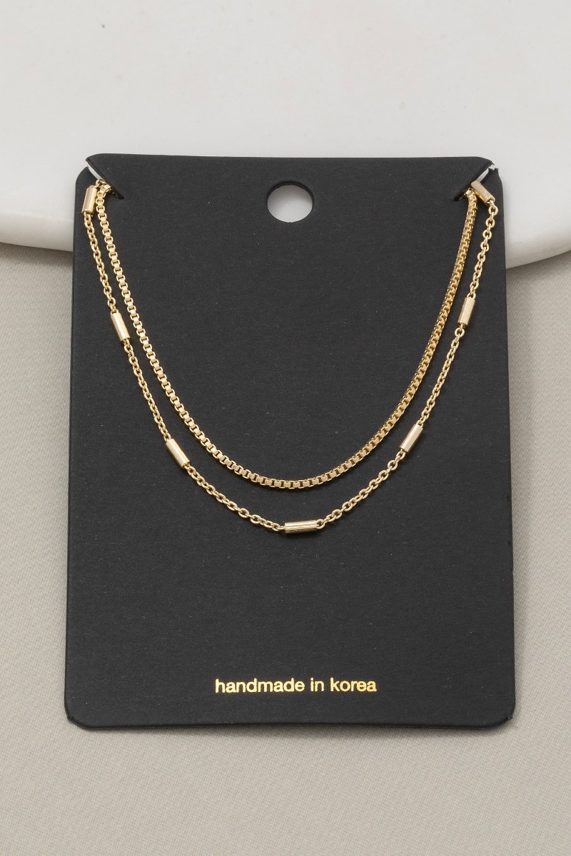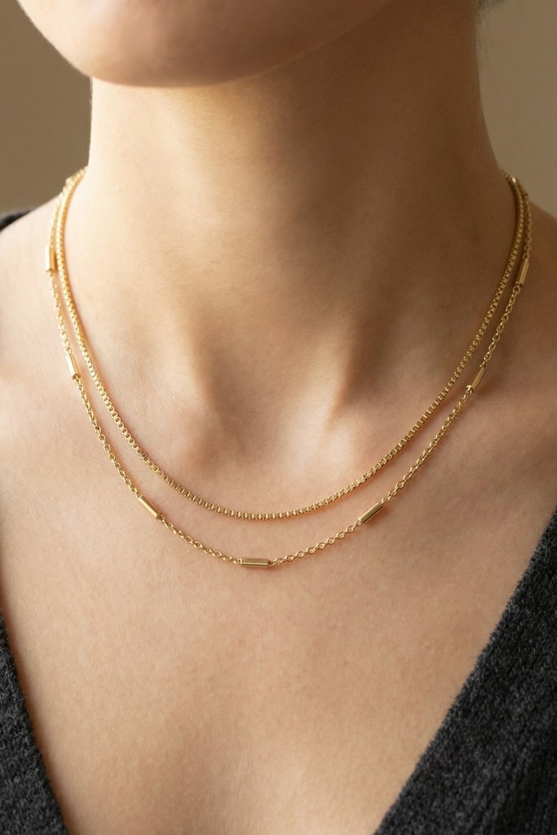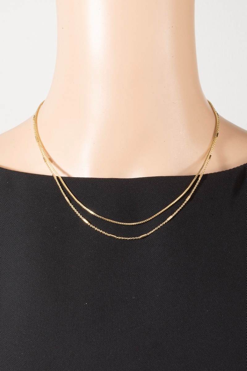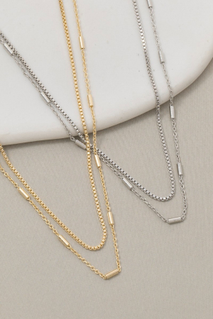 • This chain necklace brings a stunning double layer bar accents style. Embark on a journey of sartorial refinement as this chain necklace effortlessly complements your fashion sense.