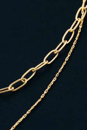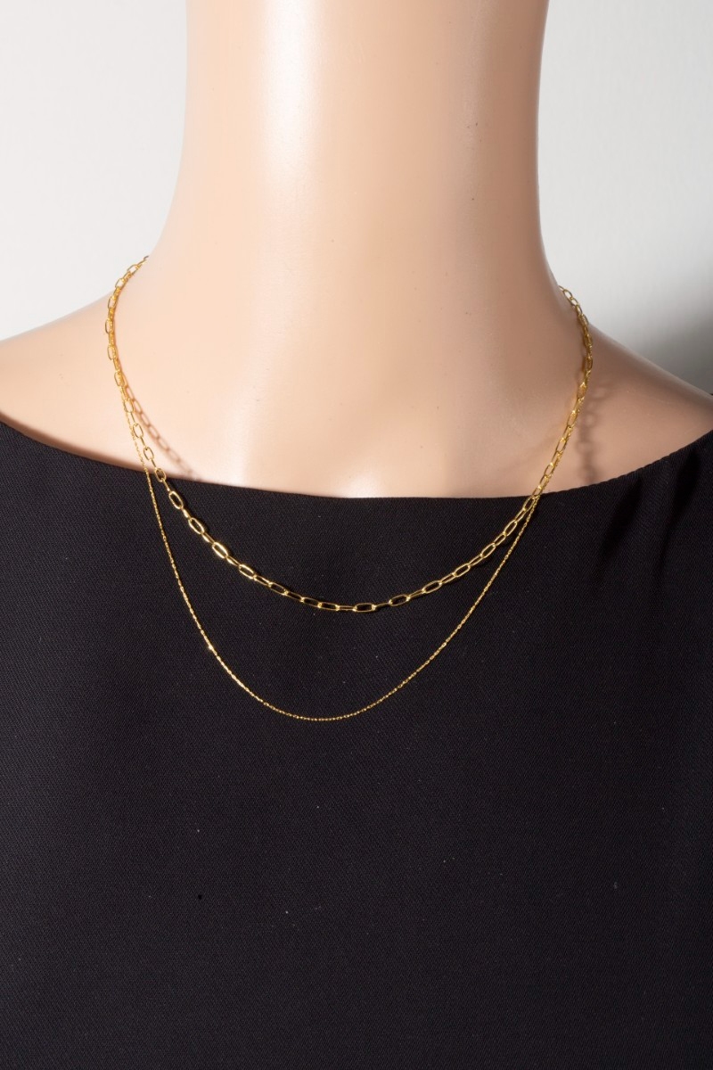 • This chain necklace introduces a stunning double layered style. Discover the perfect balance of subtlety and flair as this chain necklace effortlessly completes your look.