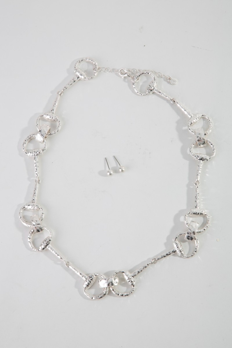 • This necklace set brings a unique hammered equestrian bit link style. Celebrate individual style with this versatile, eye-catching addition.