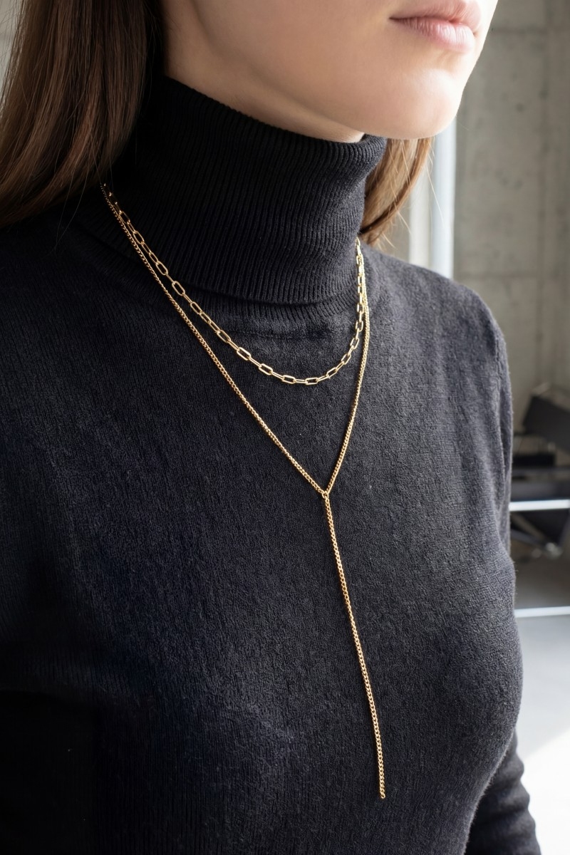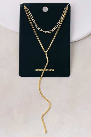 • This chain necklace brings a stunning layered chain y necklace style. Explore a refined sense of style with this chain necklace, seamlessly elevating the chic factor of your look.