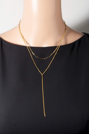 Gold Dipped Double Irregular Bar Y Chain Necklace
