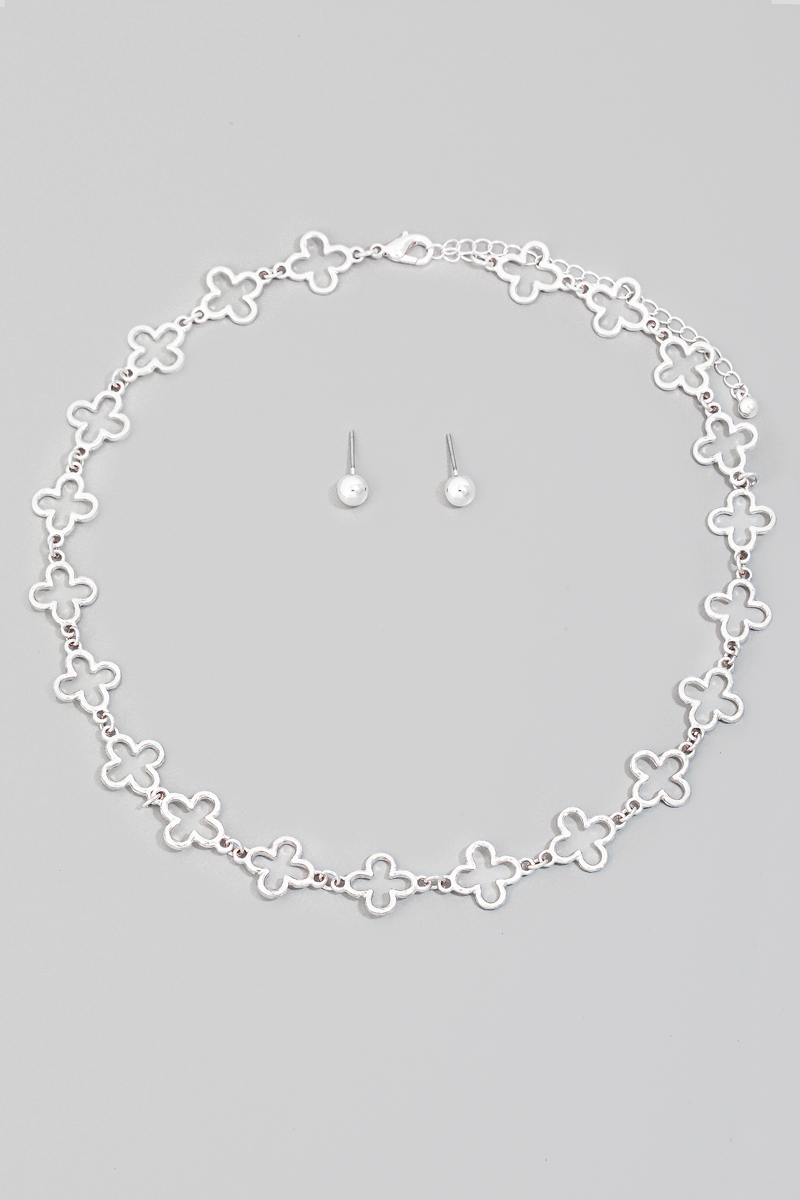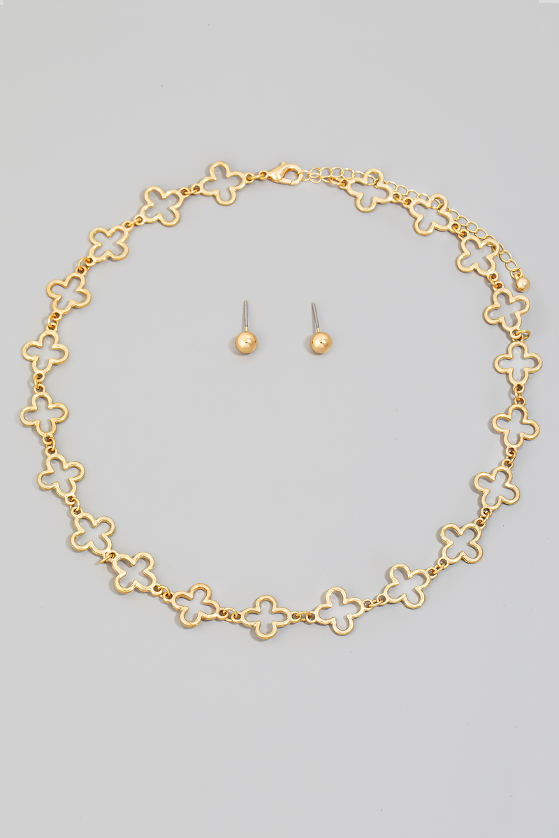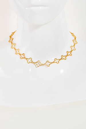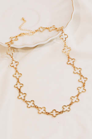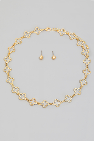 - This chain necklace features a fashionable metallic clover set style. Celebrate the art of accessorizing with this piece that effortlessly encapsulates modern trends.