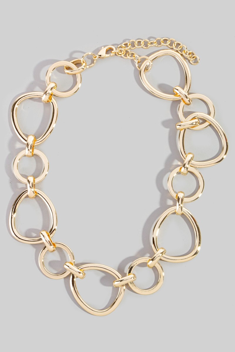 - This chain necklace features a fashionable mixed large hoop chain statement necklace style. Witness the transformative power of accessories as this piece effortlessly redefines your fashion narrative.