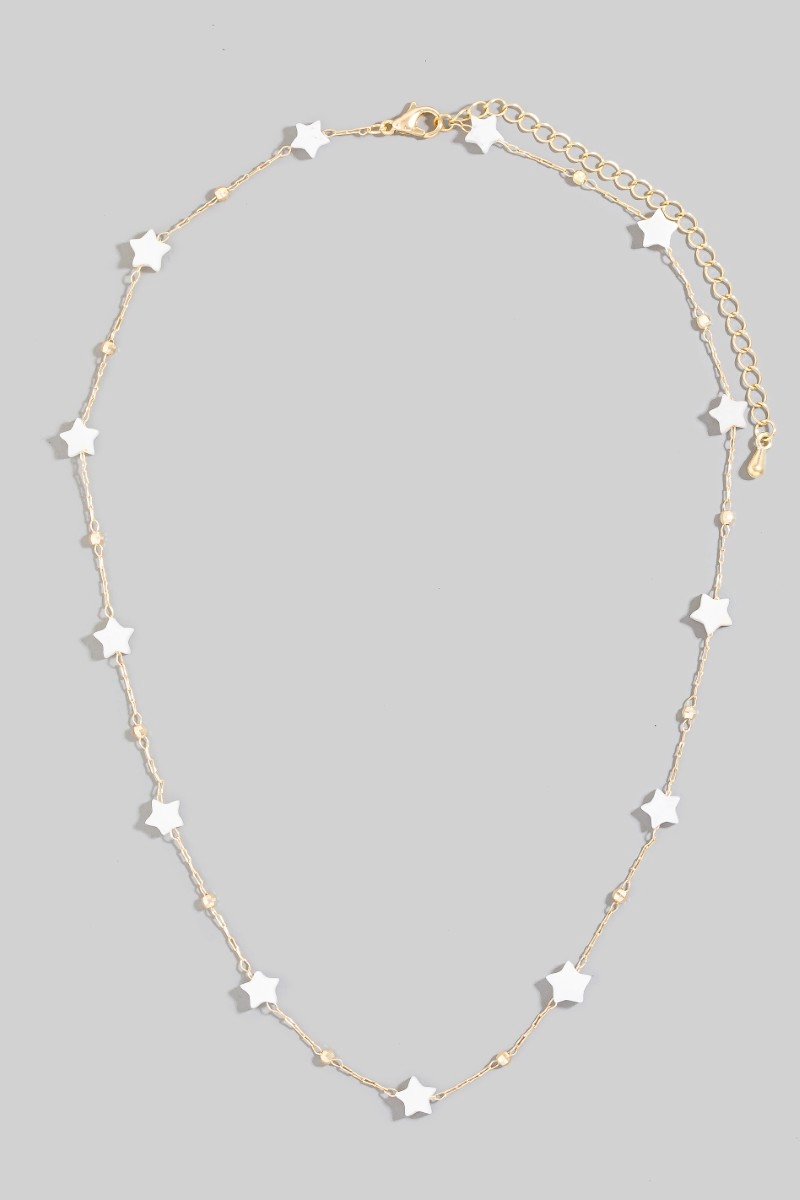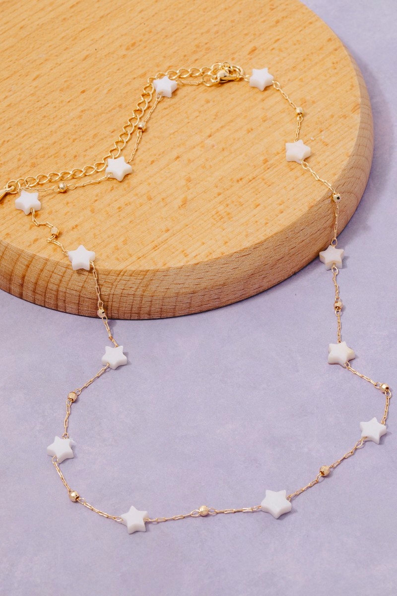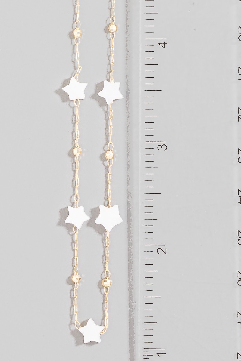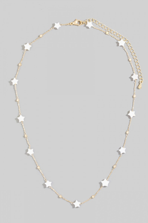 • This chain necklace displays a vibrant mother of pearl station stars style. Embark on a journey of sartorial refinement as this chain necklace effortlessly complements your fashion sense.