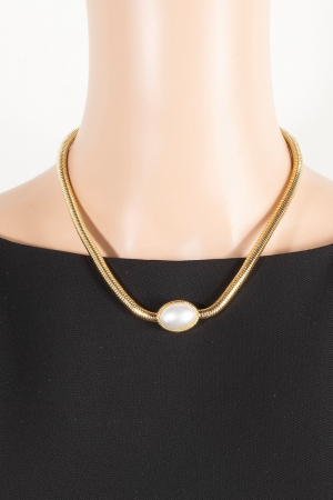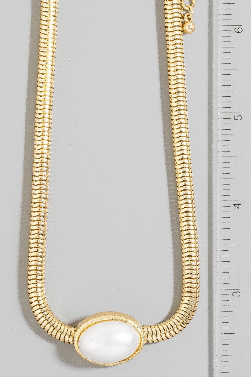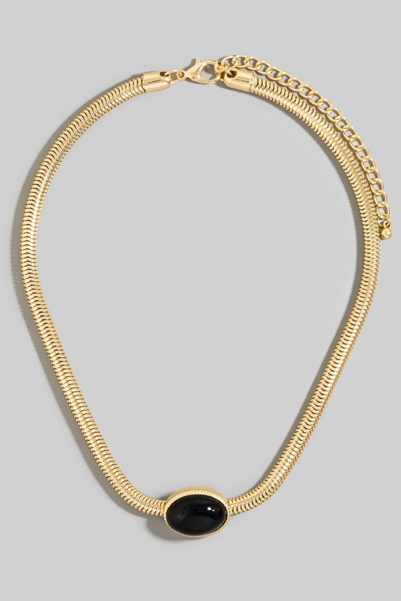 - This chain necklace introduces a stunning oval pendant metallic flexible snake style. Elevate your ensemble with this chain necklace that effortlessly captures the essence of refined fashion.