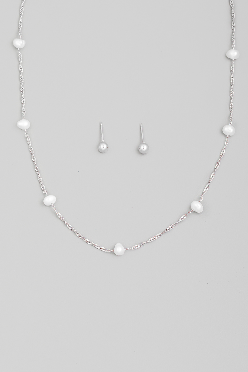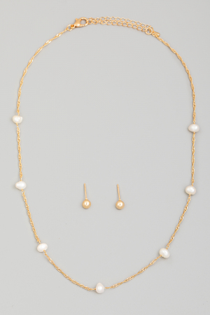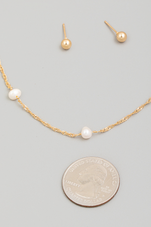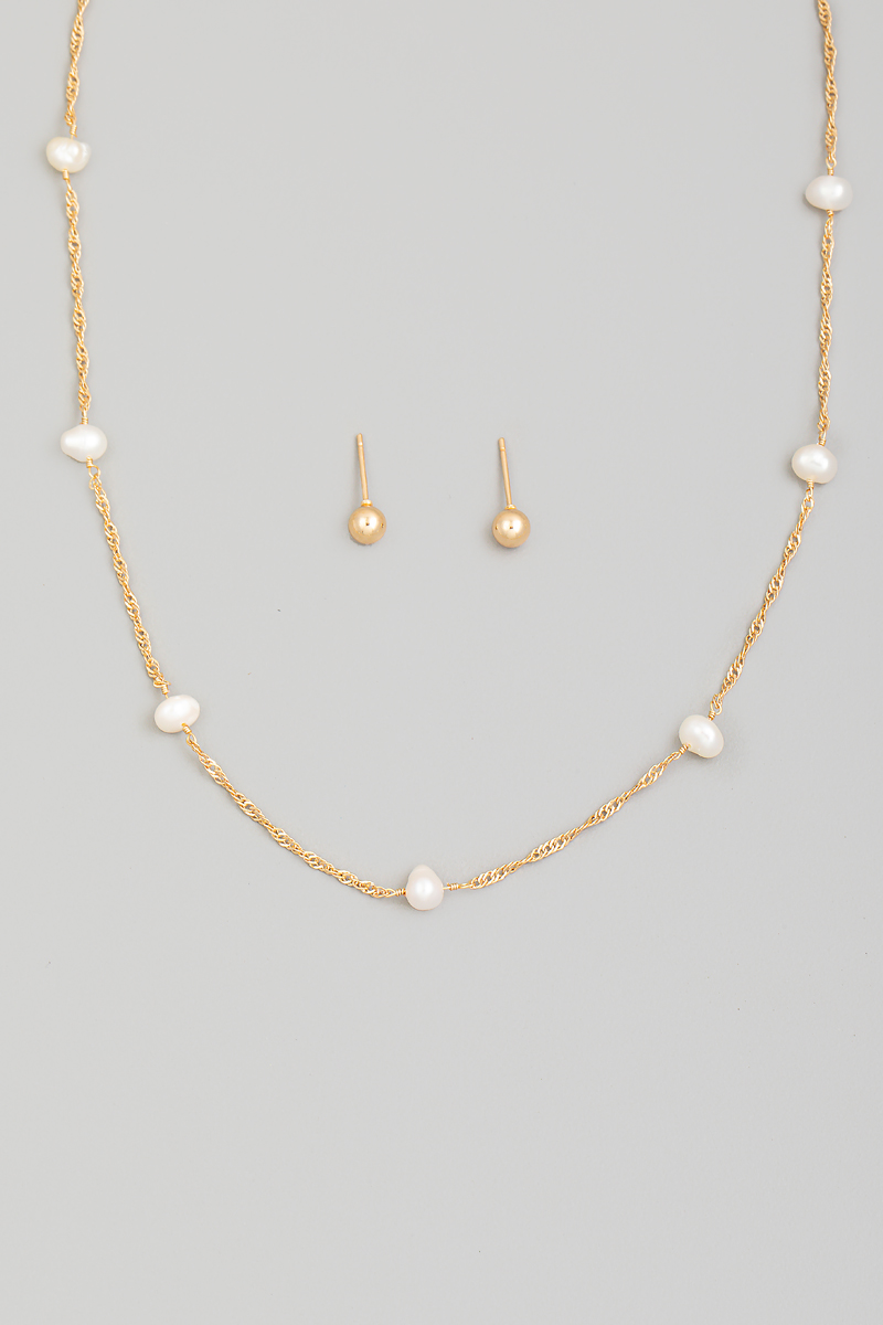Gold Dipped Station Beads Dainty Rope Chain Necklace Set