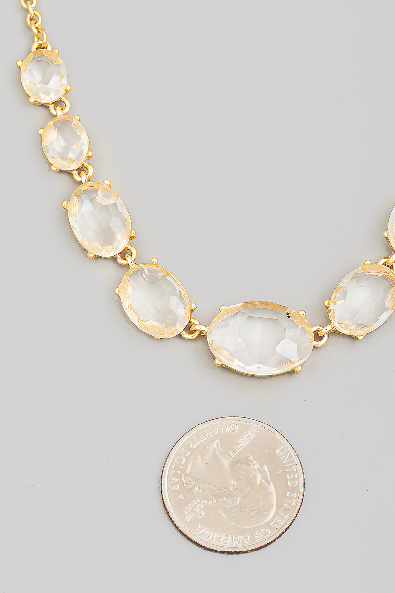 Stainless Steel Stone Stud Coin Pendant Necklace
