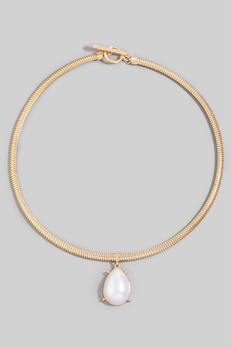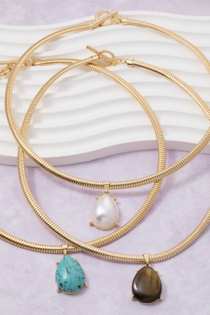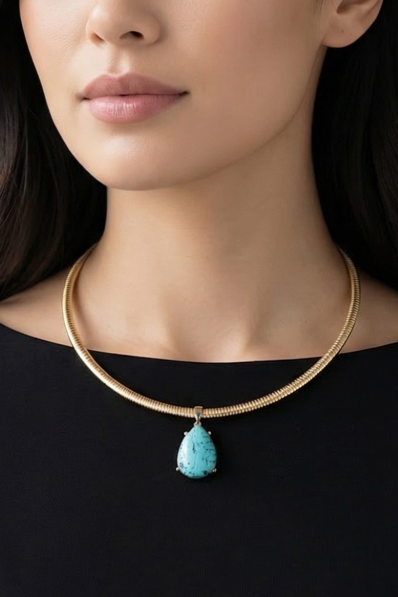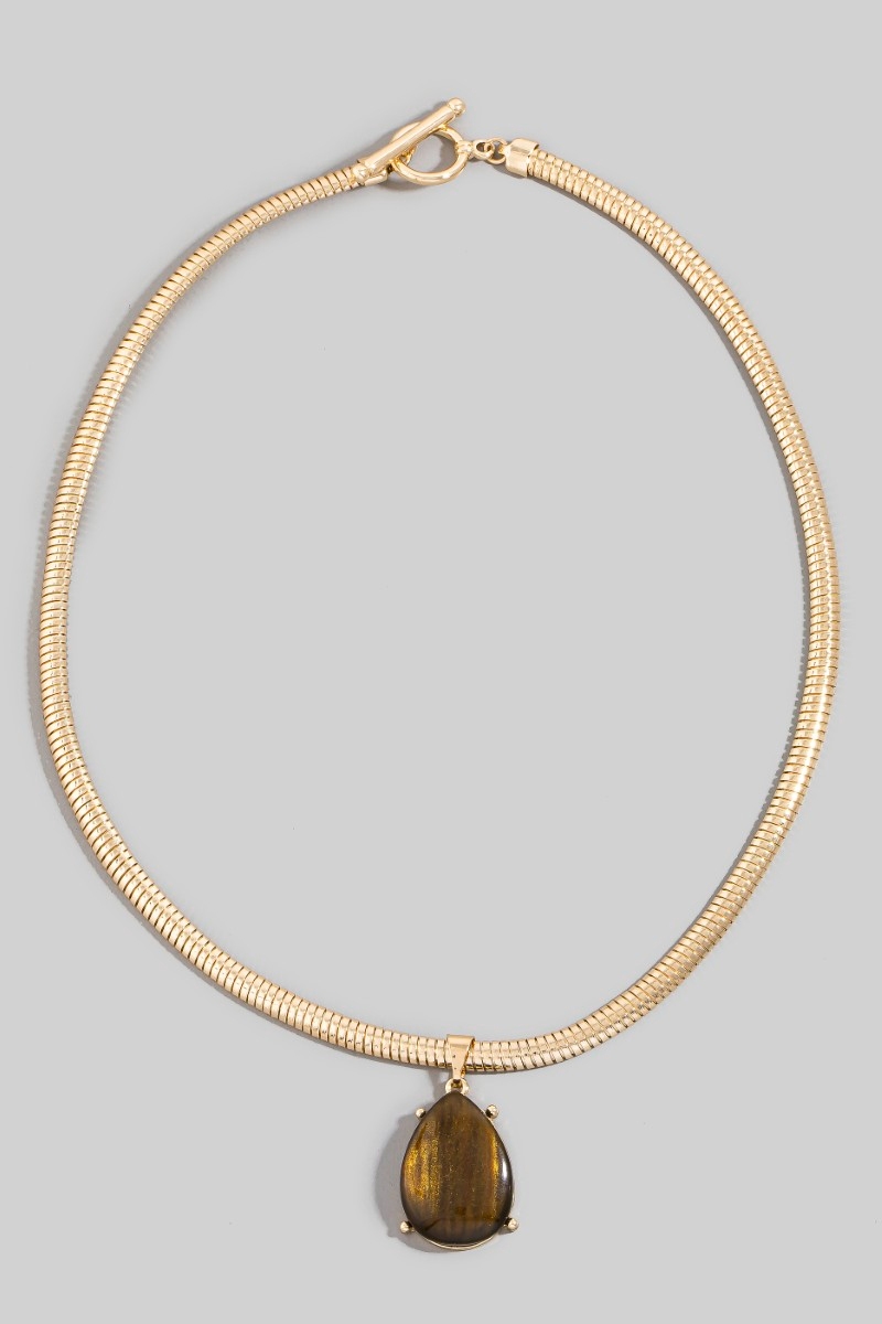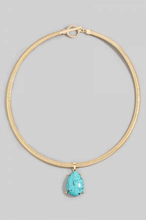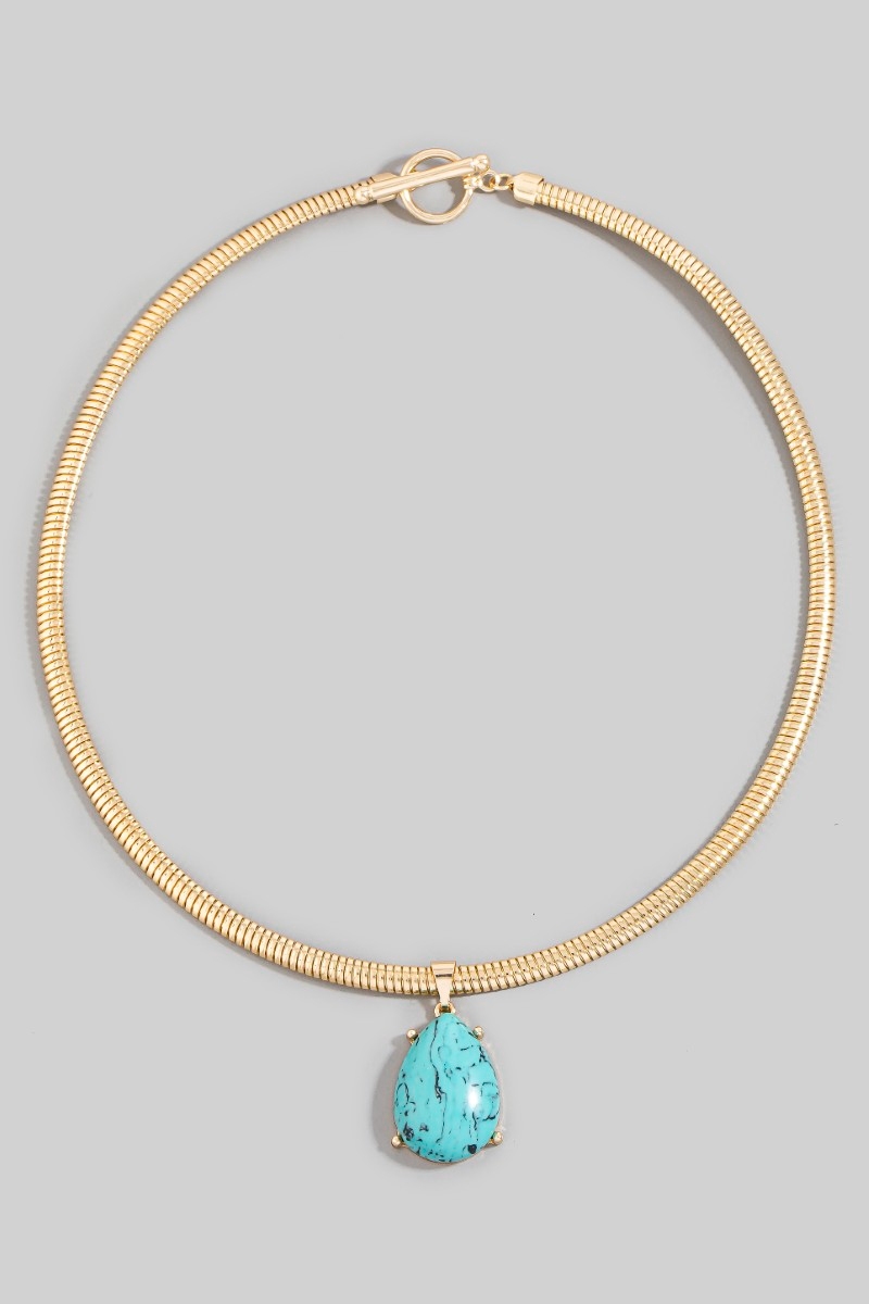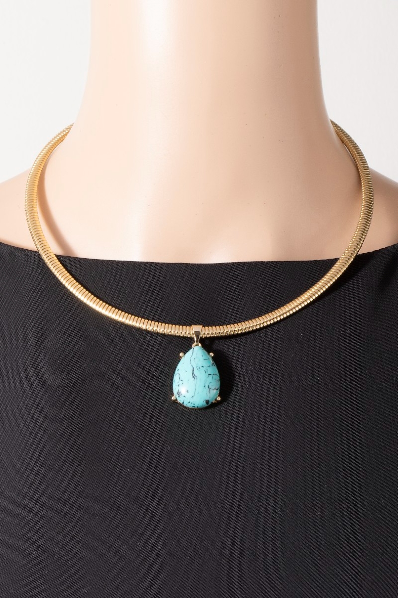 • This chain necklace brings a luxurious teardrop pendant metallic flexible snake style. Celebrate the art of accessorizing with this piece that effortlessly encapsulates modern trends.