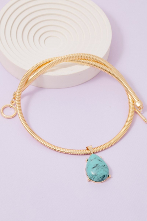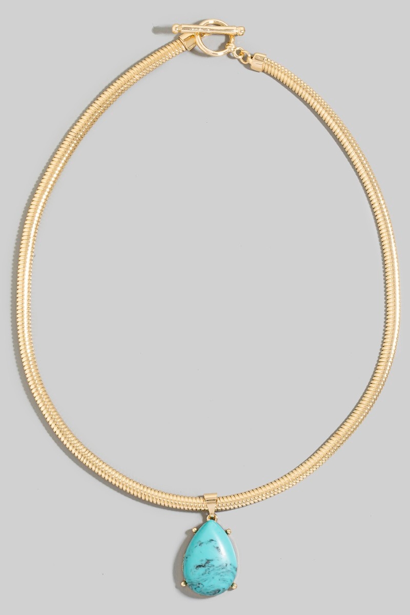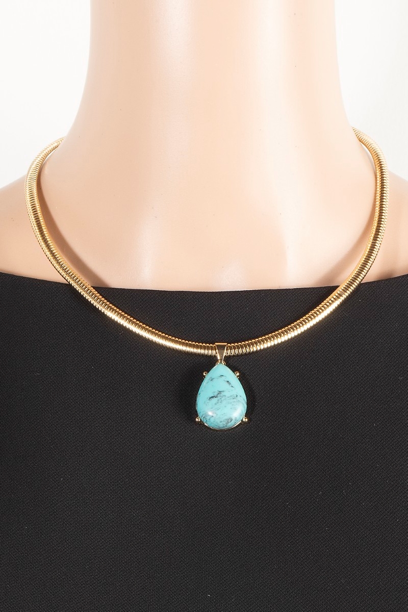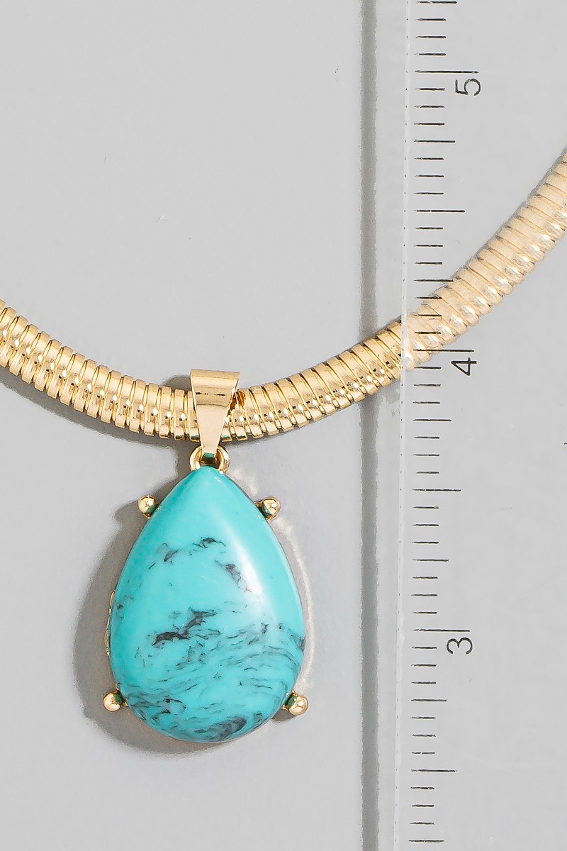 • This chain necklace introduces a stunning teardrop pendant metallic flexible snake style. Savor the allure of detailed craftsmanship in this exquisite chain necklace.