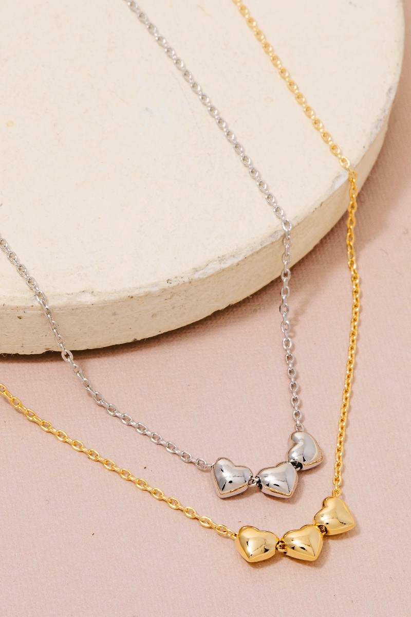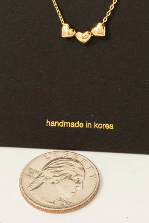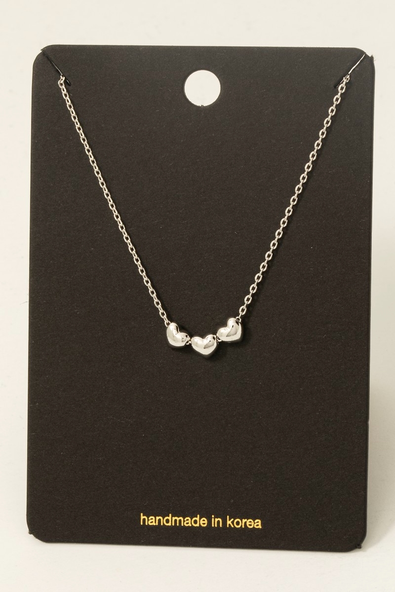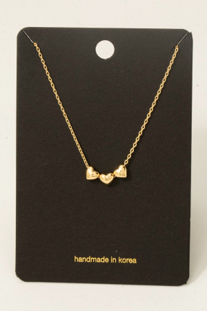 • This chain necklace displays a vibrant triple heart charms style. Unveil modern elegance with this subtly intricate chain necklace.