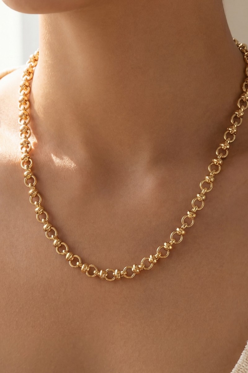 - This chain necklace displays a vibrant circle link style. Unveil modern elegance with this subtly intricate chain necklace.