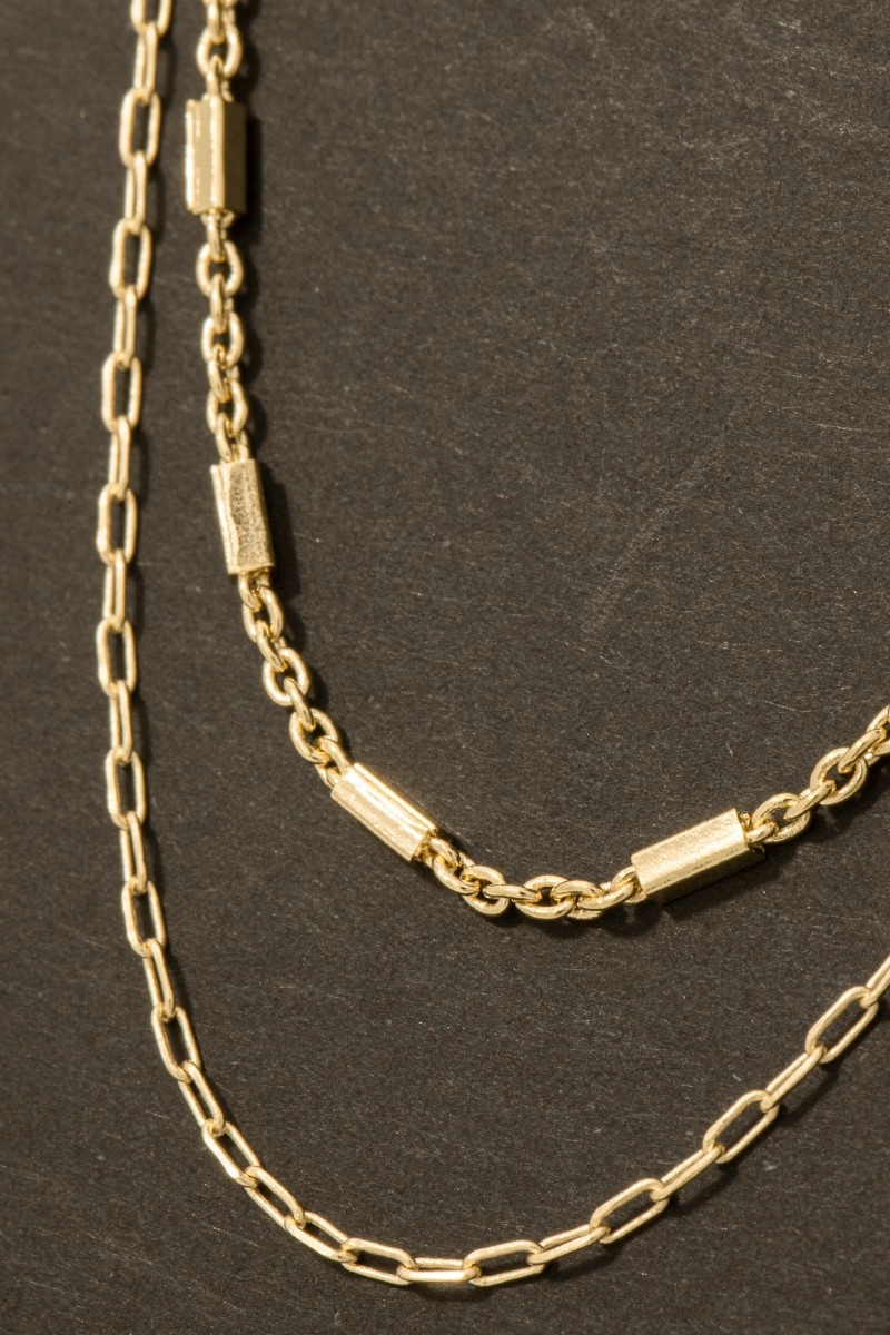 - This necklace introduces a unique double chain link style. Delight in the intricate details that make this necklace an essential element in expressing your fashion identity.