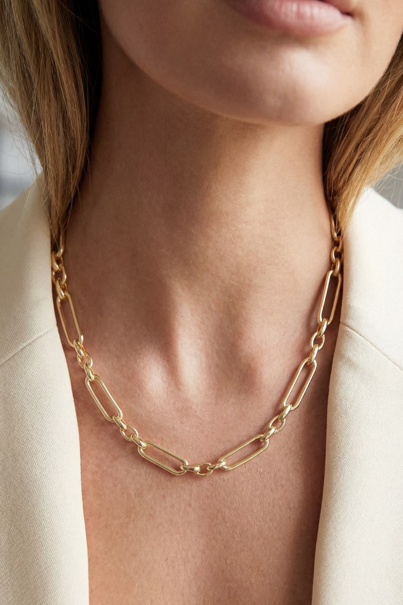- This chain necklace adds a modern gold dipped long oval classic style. Savor the craftsmanship that goes beyond the ordinary, as this chain necklace effortlessly captivates attention.