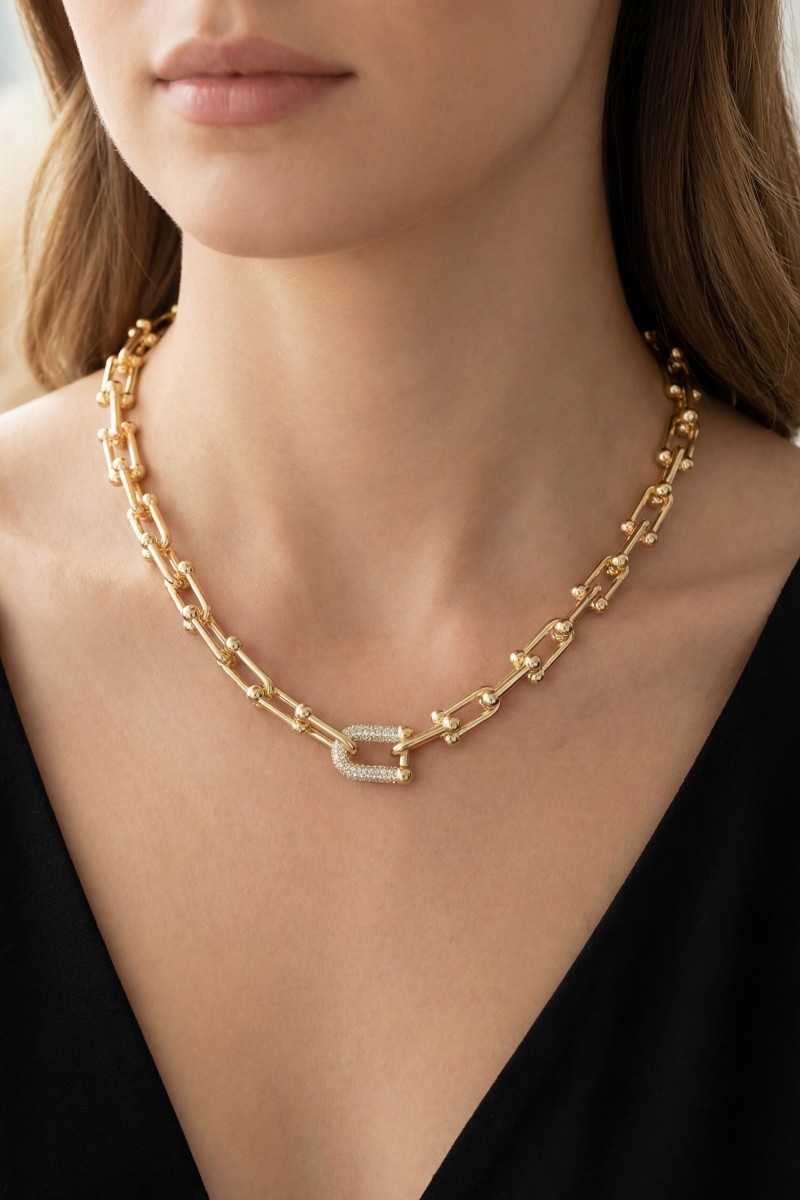 • This chain necklace brings a unique gold dipped pave charm style. Delight in the intricate details that make this chain necklace an essential element in expressing your fashion identity.