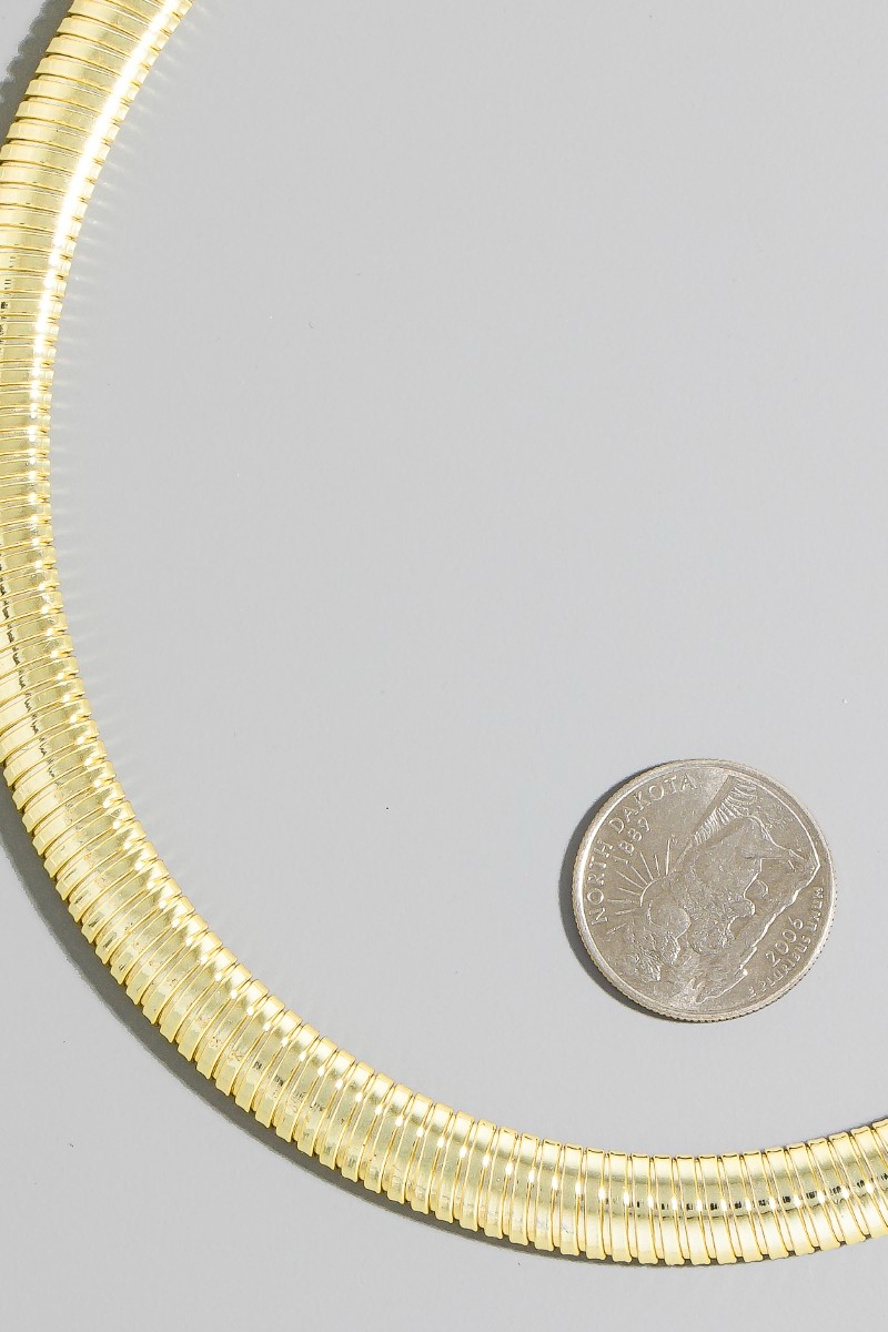 • This chain necklace introduces a stunning gold dipped thick snake classic style. Indulge in the artistry of accessorizing with this unique piece. Columbus Jewelry