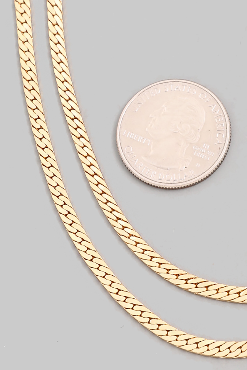 • This chain necklace features a fashionable layered herringbone classic style. Explore a refined sense of style with this chain necklace, seamlessly elevating the chic factor of your look.