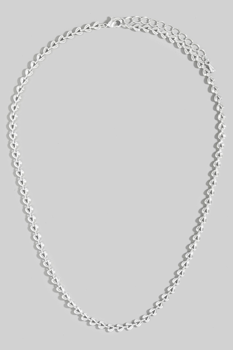 • This chain necklace showcases a unique metallic heart classic style. Experience refined sophistication with this understated yet stylish piece.