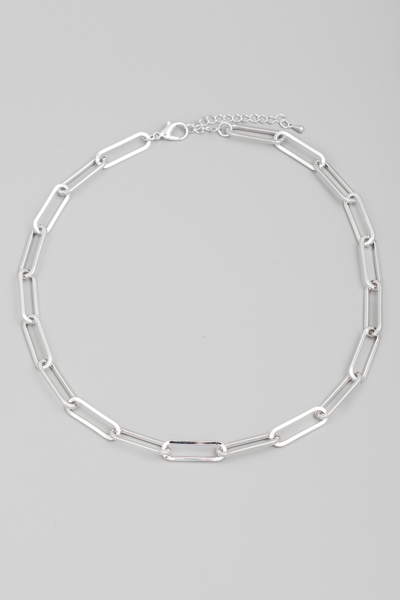 - This necklace displays a fashionable metallic long oval classic chain link style. Celebrate individuality with this necklace that effortlessly expresses your unique sense of style.