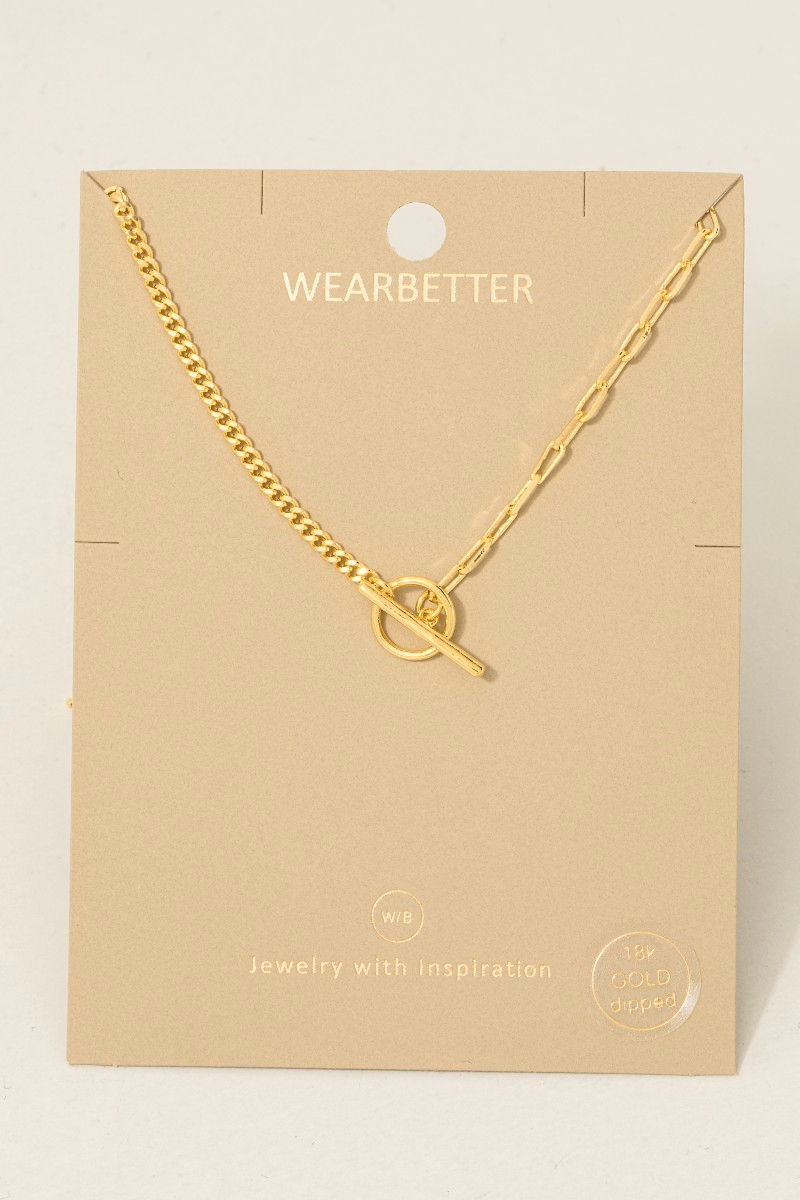 • This necklace showcases a timeless toggle chain y style. Witness the transformative power of accessories as this piece effortlessly redefines your fashion narrative.