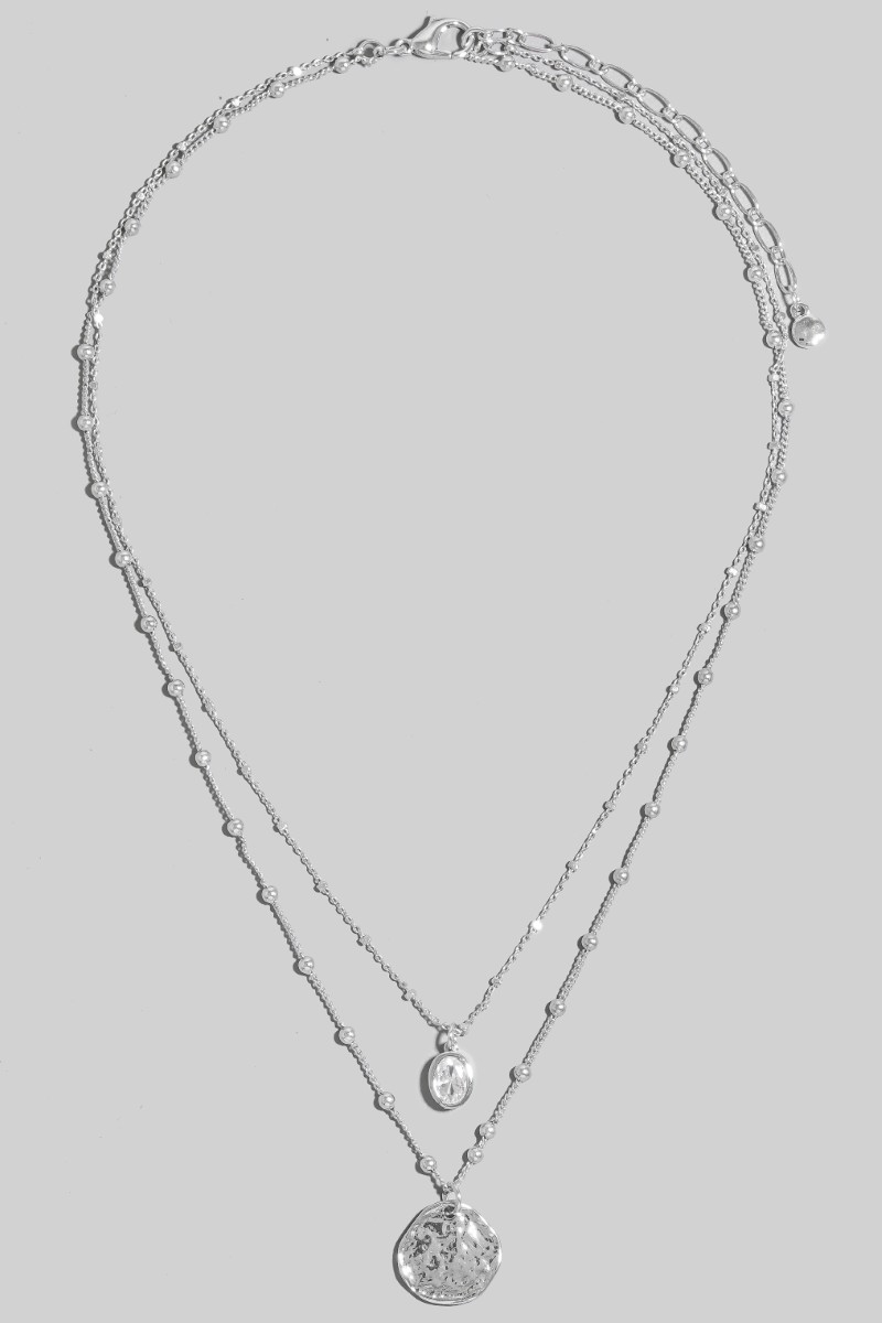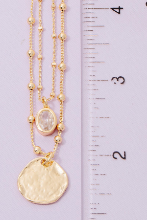 - This chain necklace adds a modern coin and oval cubic zirconia charm layered style. Witness the perfect fusion of style and functionality as this chain necklace effortlessly complements your lifestyle.