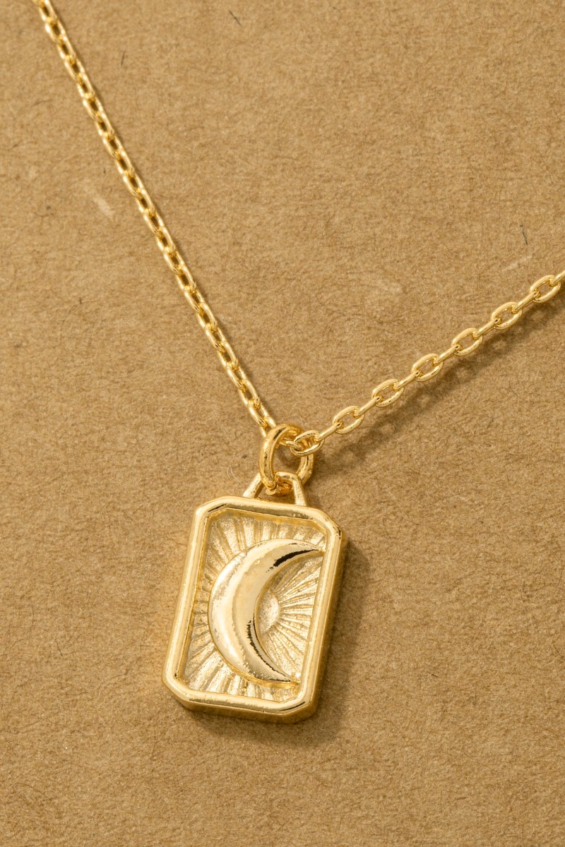 - This trending necklace introduces a unique crescent moon rectangle pendant necklace style. Witness the perfect fusion of style and functionality as this trending necklace effortlessly complements your lifestyle.