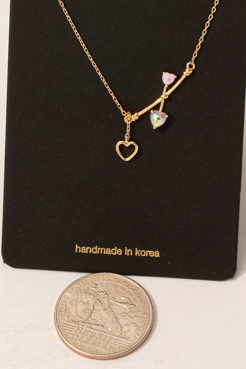 Gold Dipped Mini Heart Station Charms Chain Necklace