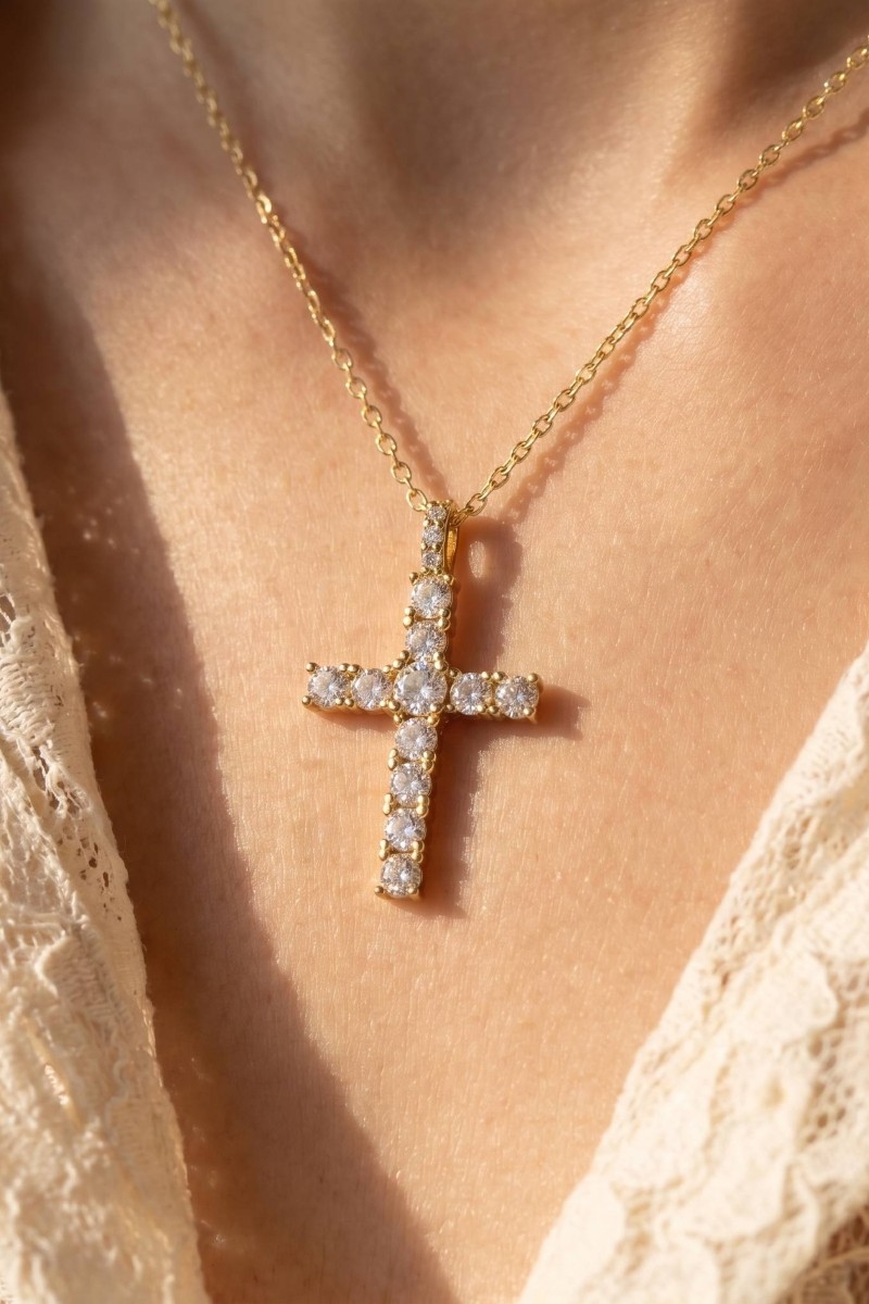 - This pendant necklace displays a vibrant cz pavé cross style. Delight in the nuanced details that make this pendant necklace a testament to fine design and impeccable taste.