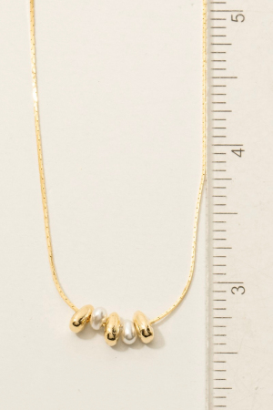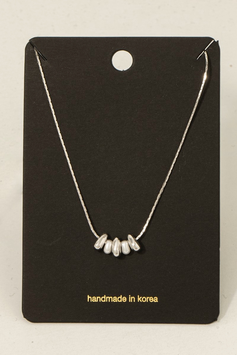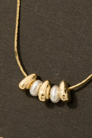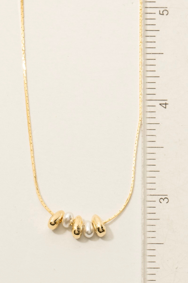 - This necklace adds a modern dainty snake chain metallic bead and pearl charms style. Embark on a journey of sartorial refinement as this necklace effortlessly complements your fashion sense.