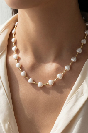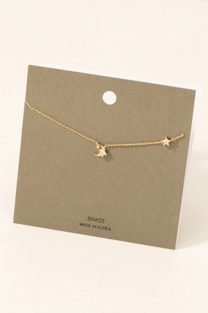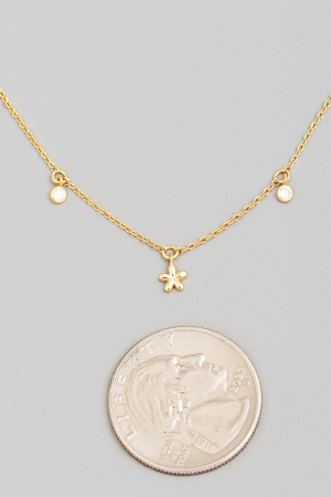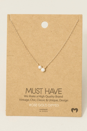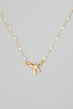 • Bow Pendant Pearl Beaded Station Chain Necklace